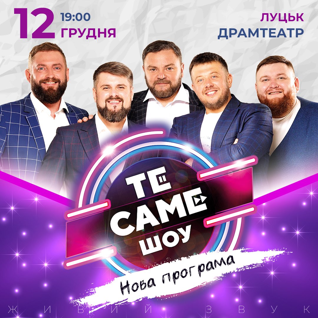 У Луцьку 12 грудня із гумористичною програмою «ТеСАМЕШоу» виступлять вар’яти. Вечір гумору відбудеться о 19:00 в облмуздрамтеатрі.