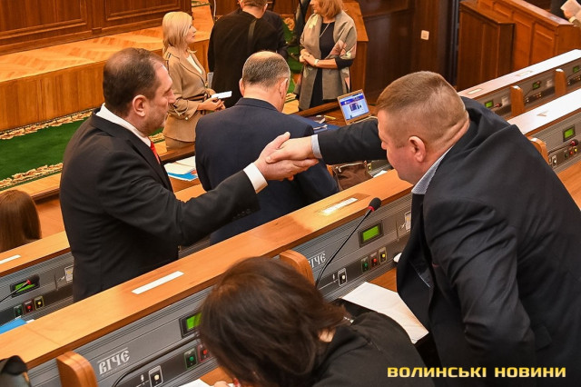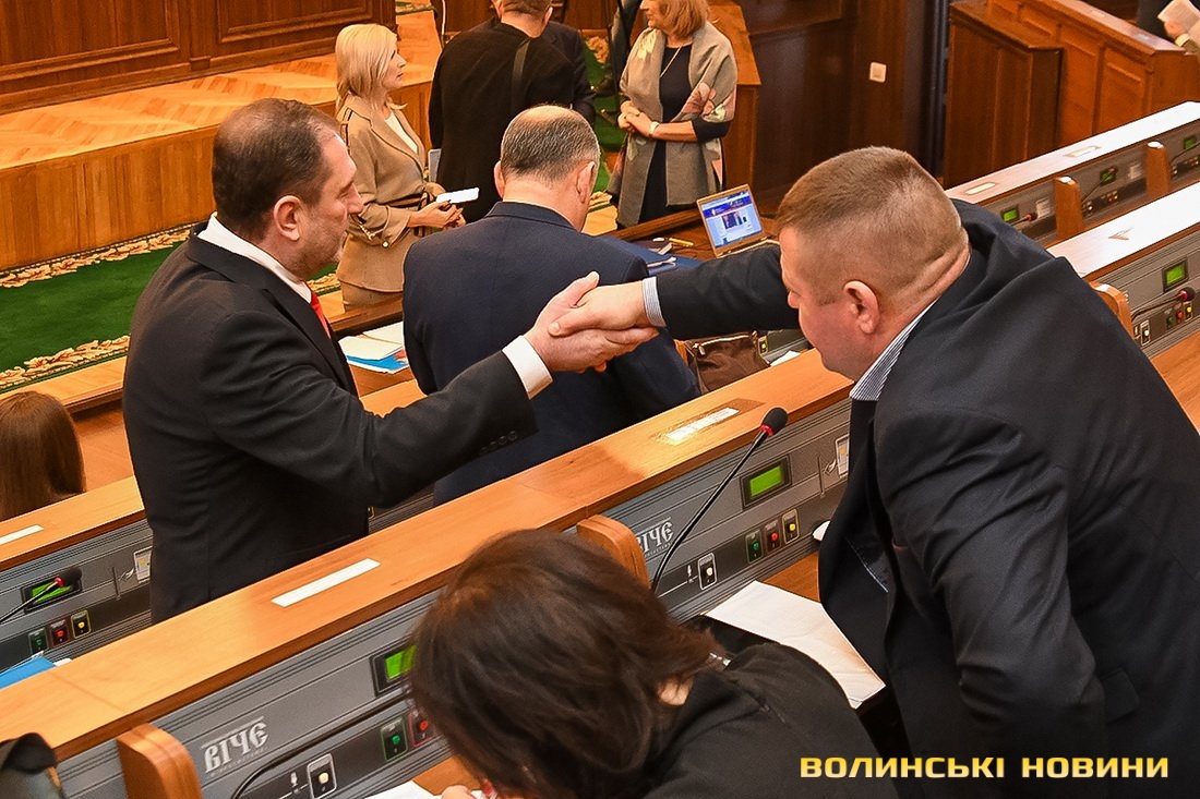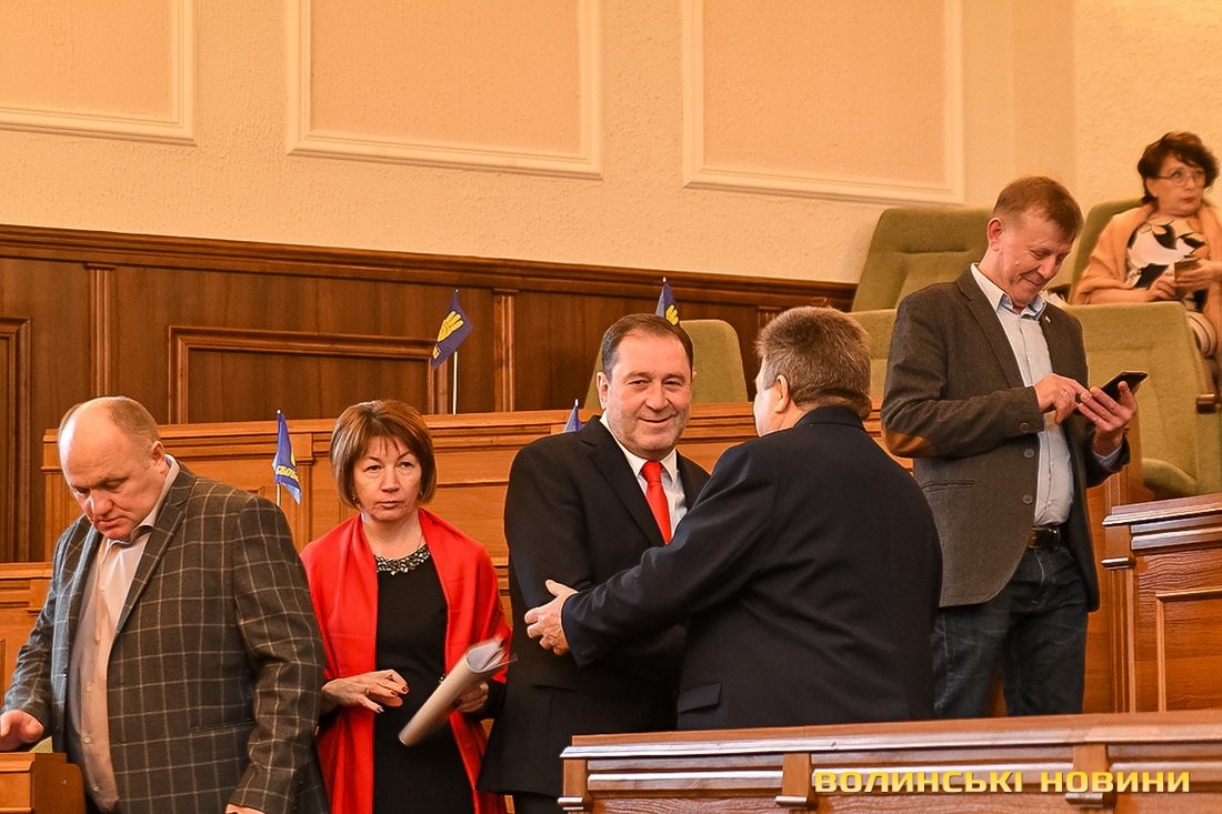 «Із сумом вимушена повідомити, що внаслідок бойових дій, отриманих травм чи посттравматичних розладів передчасно пішли з життя наші земляки-волиняни», – сказала вона.Не минулося й без приємних несподіванок – депутат Роман Микитюк отримав орден… за пам’ятник. Так, відзнаку «Честь. Мужність. Пам'ять» йому вручили за фінансування спорудження пам’ятного знаку воїнам-афганцям у Турійську.Водночас у зв’язку з виходом зі складу фракції БПП «Солідарність» депутата Валентина Кошельника фракція, у складі якої залишилося менше чотирьох депутатів, припинила свою роботу.