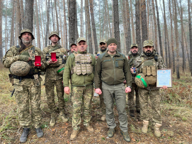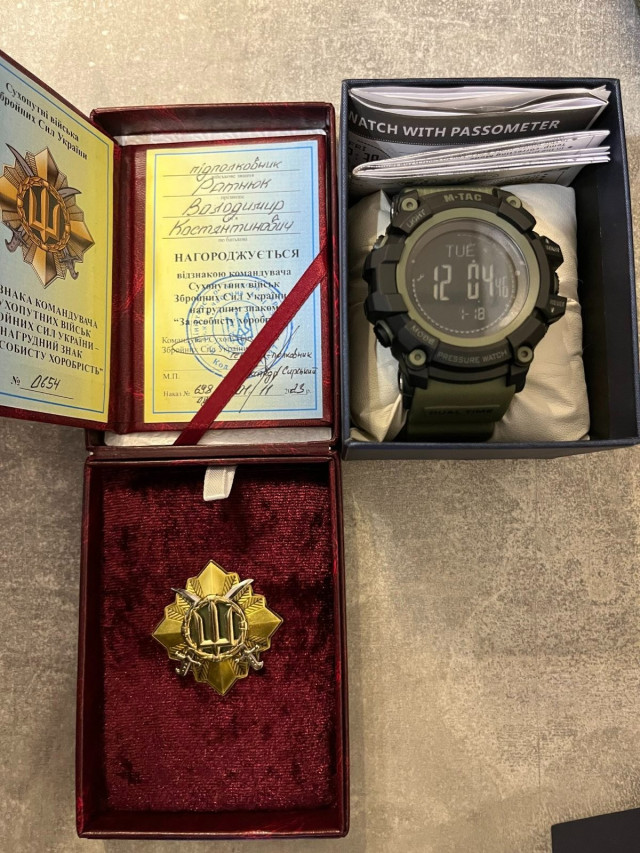 Зокрема, начальнику відділення об’єднаної вогневої підтримки Волинської бригади тероборони, підполковнику Володимиру Ратнюку нагрудний знак «За особисту хоробрість» вручив командувач ОСУВ «Хортиця» / командувач Сухопутних військ Збройних Сил України, генерал-полковник Олександр Сирський.
