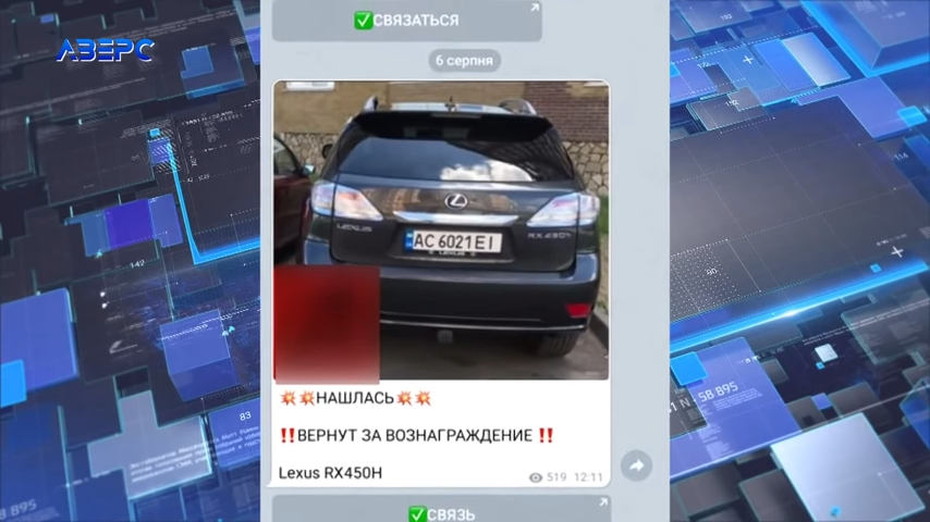 Як розповіли Тетяна Аліксиєвич та її син Денис, на месенджер жінки надійшло повідомлення від цього чоловіка про те, що він бачив фото її автівки в одному з телеграм-каналів, на який скинув посилання. Пані Тетяна зв’язалася з авторами каналу. Але за Lexus виставили захмарну суму. Таких коштів жінка не мала. Згодом, за її словами, співрозмовник повідомив, що ті люди погодилися зменшити розмір викупу.