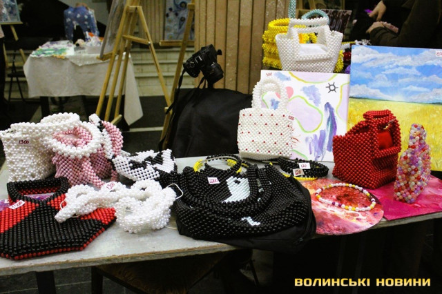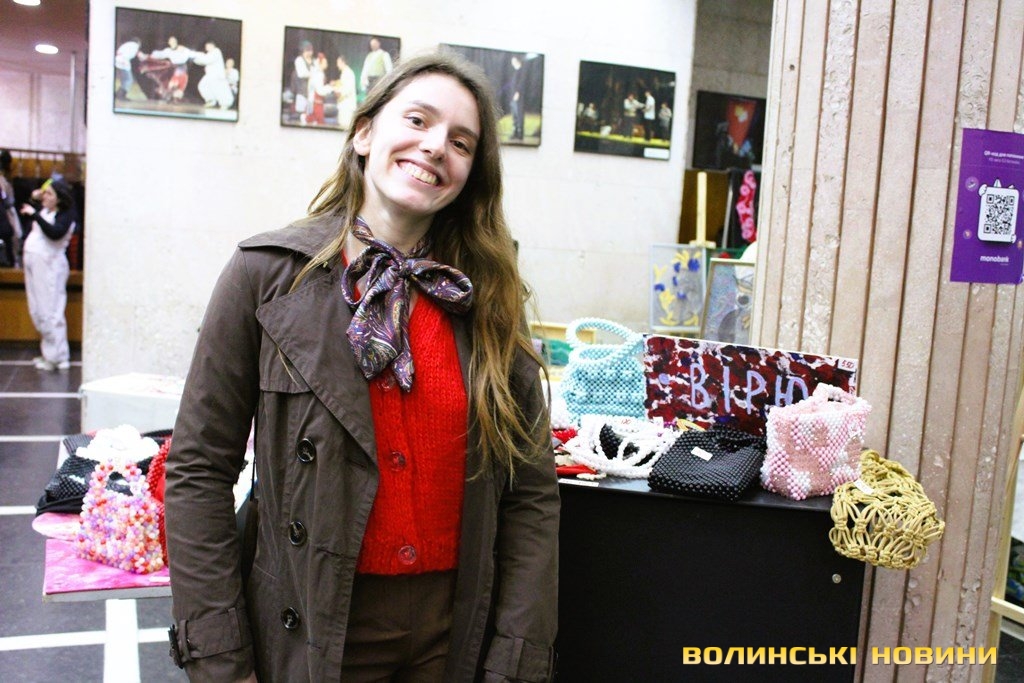 Ведучою івенту стала блогерка та співачка Аліна Жук. Вона подякувала за організацію ініціативи та заспівала пісні «Ромашки сині» і «Волошковий цвіт». Також з музичними композиціями виступили Сергій Скулинець та Віктор Верба.На першому поверсі в холі театру гостей зустрів Fashion-ярмарок місцевих виробників: представників бізнесу, сфери послуг, б’юті, легкої промисловості, майстрів hand made та інших. Однією з них стала Дарина – UGC-creator, яка виготовляє сумочки ручної роботи. На один виріб, каже, витрачає п’ять-шість днів.«Я в цій справі вже досить довго, до речі, тут ще є картини, які я малювала, коли мій тато пішов на війну. Зокрема через це мені подобається ця ініціатива, власне, всі донати перейдуть на підтримку ЗСУ», – поділилася дівчина.Читати ще: У Нововолинську відкрилася виставка картин дружин загиблих Героїв