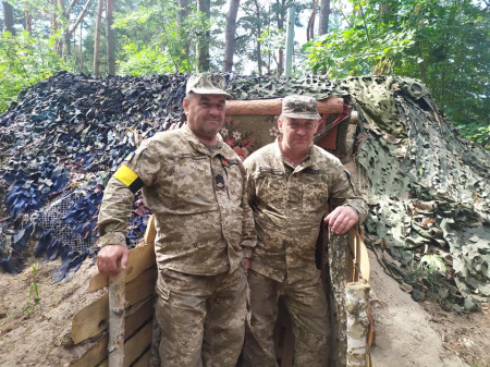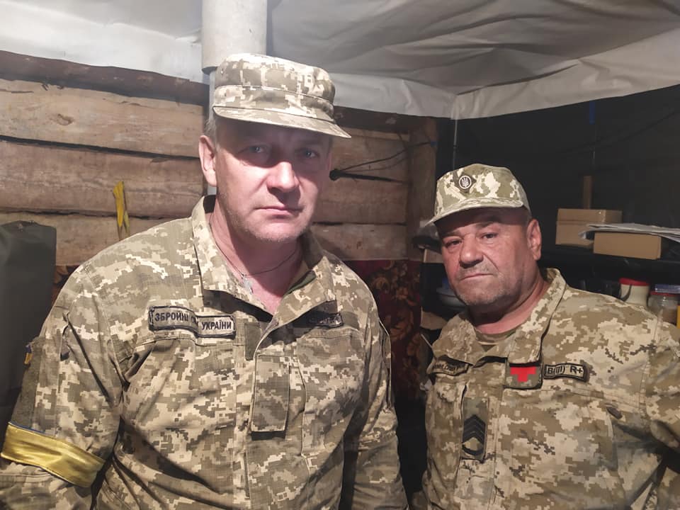 54-річний солдат Олександр Володимирович (позивний Боцман) і 58-річний головний сержант Микола Іванович (позивний Док) з перших днів війни служать у мотострілецькій роті одного з окремих батальйонів 100-ї ОБрТрО.