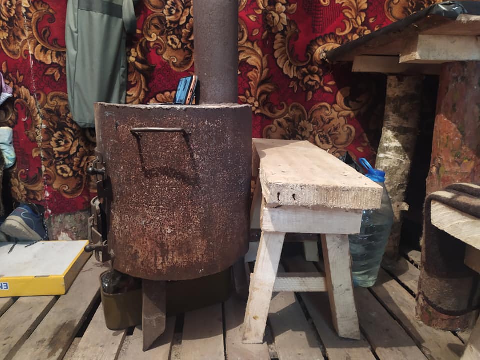 На двох чоловіки спорудили невеличкий, але дуже затишний бліндаж. Є тут і саморобні тапчани для спання, і колоритний ослінчик, і невеличкий столик, на стінах – полички із посудом, мильницями, щітками-пастами для чищення зубів тощо. Ну й, звісно, тутешня королева, її бліндажна величність – буржуйка!