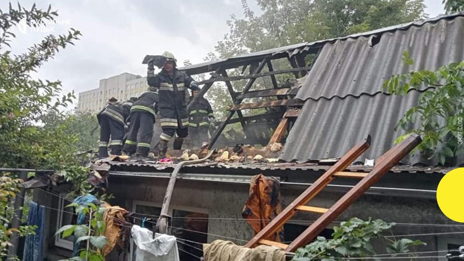 12 серпня внаслідок негоди у Луцьку трапилося дві пожежі. Через потрапляння блискавки загорілися дві будівлі.