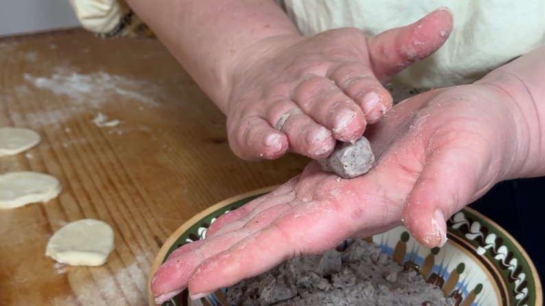 Інна Черевко каже, що тісто виходить, як на вареники – еластичне. Замішаному тісту слід дати трішки відпочити.«Тісто готове, викладаємо його на дошку і будемо розкачувати. Розкачувати треба якомога тонше, а бобів додавати щонайбільше. У нашій родині дотримувалися посту, бо вважали, що душа має пройти цей пісний період, щоб ми відродилися й на весну були сповнені сили і духовної, і фізичної до праці», – пояснює жінка.