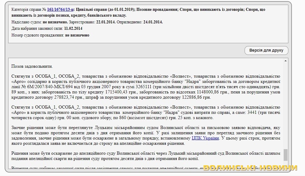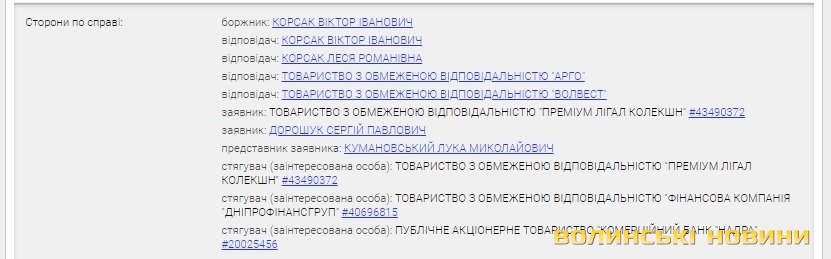 Організатором продажу є приватний виконавець Пирога Сергій Степанович. Стартова ціна ділянки – 4 691 400 гривень. Аукціон має відбутися 28 лютого.Згідно з оприлюдненими документами, власником ділянки є луцький бізнесмен Віктор Корсак. На це майно було накладено арешт рішенням у цивільній справі161/16764/13-ц за позовом публічного акціонерного товариства комерційного банку «Надра».Зокрема, як йдеться в судових матеріалах, Віктор Корсак 3 грудня 2007 року взяв кредит у банку «Надра» на суму 250 000 доларів США під 14,4% річних з кінцевим терміном повернення до 3 грудня 2014 року. Також було укладено договори поруки між банком та дружиною бізнесмена Лесею Корсак і двома підприємствами, які є у сфері впливу подружжя: ТзОВ «Волвест» та ТзОВ «Арго». Представником відповідачів на суді був адвокат Лука Кумановський.Станом на 1 серпня 2013 року в боржника виникла заборгованість перед банком на суму 408 496,42 долара США, що було еквівалентно 3 265 111,89 гривні. З них: заборгованість за тілом кредиту – 1 715 400,43 гривні, заборгованість за відсотками – 1 148 000,86 гривні, пеня за порушення умов кредитного договору – 278 823,74 гривні, штраф за порушення умов кредитного договору – 122886,86 гривні. У результаті розгляду справи суд ухвалив рішення стягнути з боржника та поручителів заборговану суму. Зауважимо, курс долара на той момент був у межах 8 гривень.Нагадаємо, 5 лютого 2015 року Національний банк України визнав банк «Надра» неплатоспроможним, а 5 червня того ж року ухвалив рішення про його ліквідацію. Пул кредитів викупила колекторська компанія – ТзОВ «Преміум Лігал Колекшн», а за згаданим кредитом відступила право вимоги приватній особі. Згідно з даними сервісу youcontrol, його викупив Дорошук Сергій Павлович, який і звернувся до приватного виконавця щодо стягнення боргу.Мар’яна ТАРАСЮК