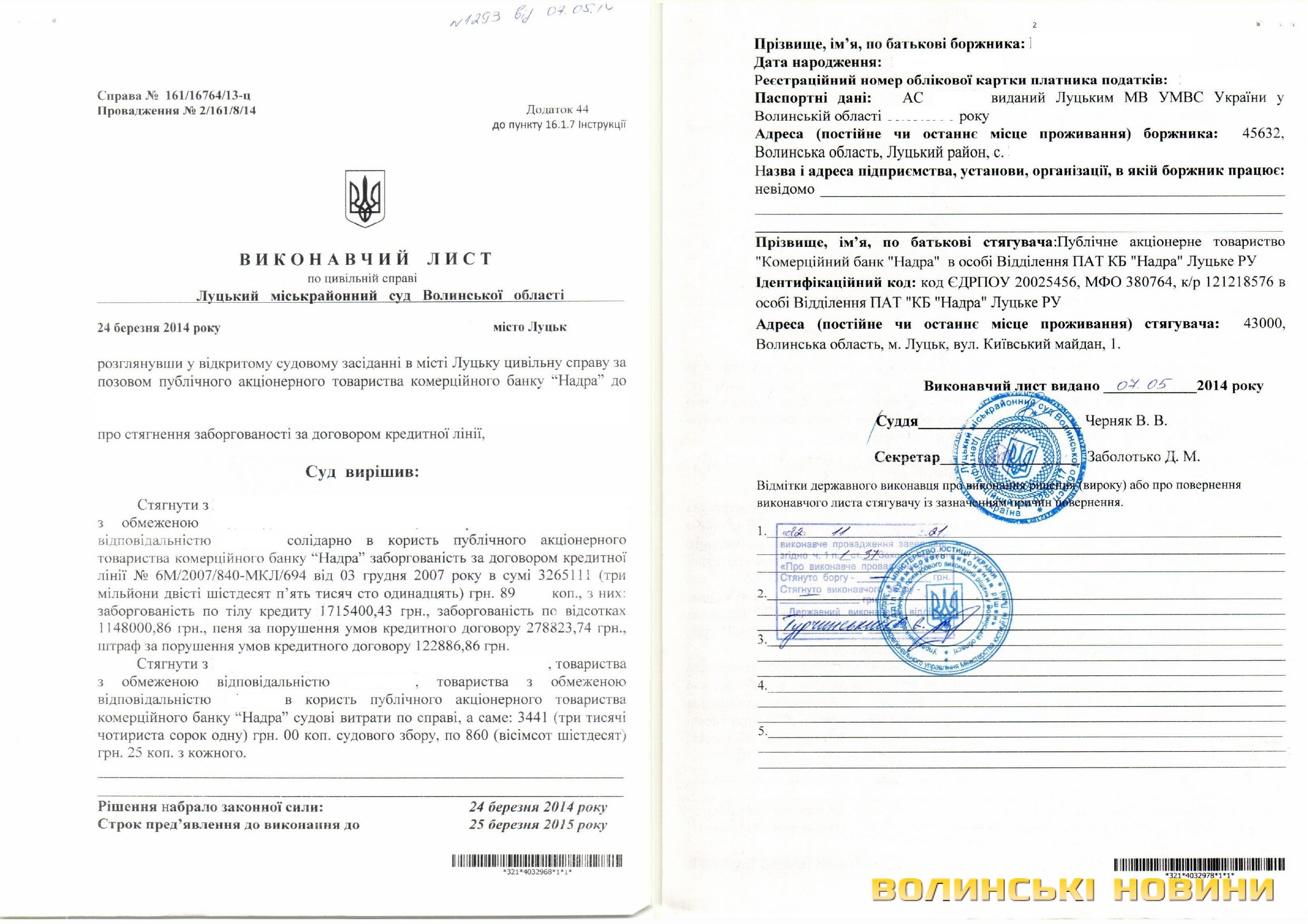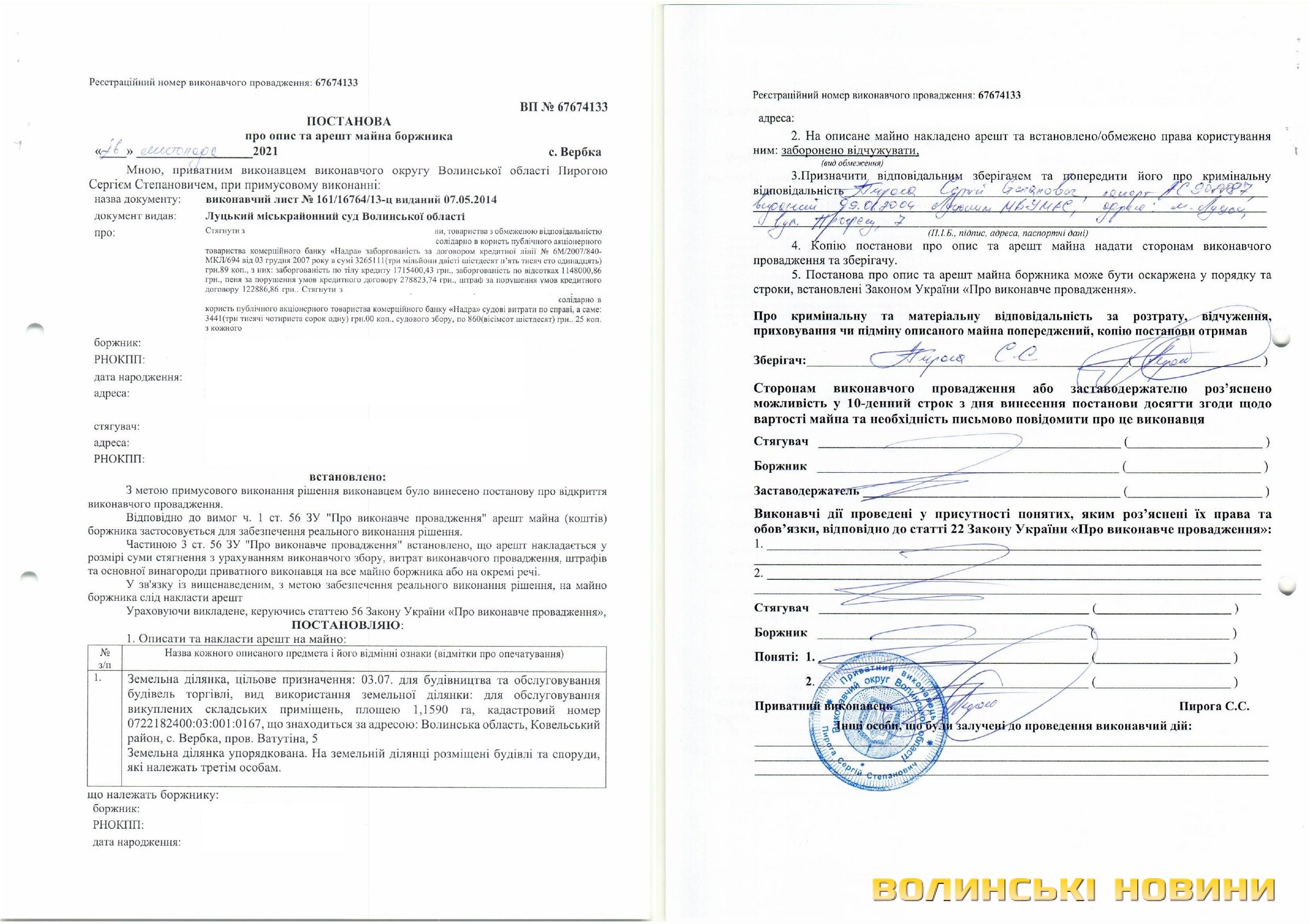 Луцький бізнесмен заборгував нині вже ліквідованому банку понад 400 тисяч доларів. За курсом дев'ятирічної давнини, коли й брав кредит, це трохи більш як 3 мільйони гривень. Саме таку суму стягує з нього приватний виконавець і, щоб отримати кошти, продає землю під Ковелем.