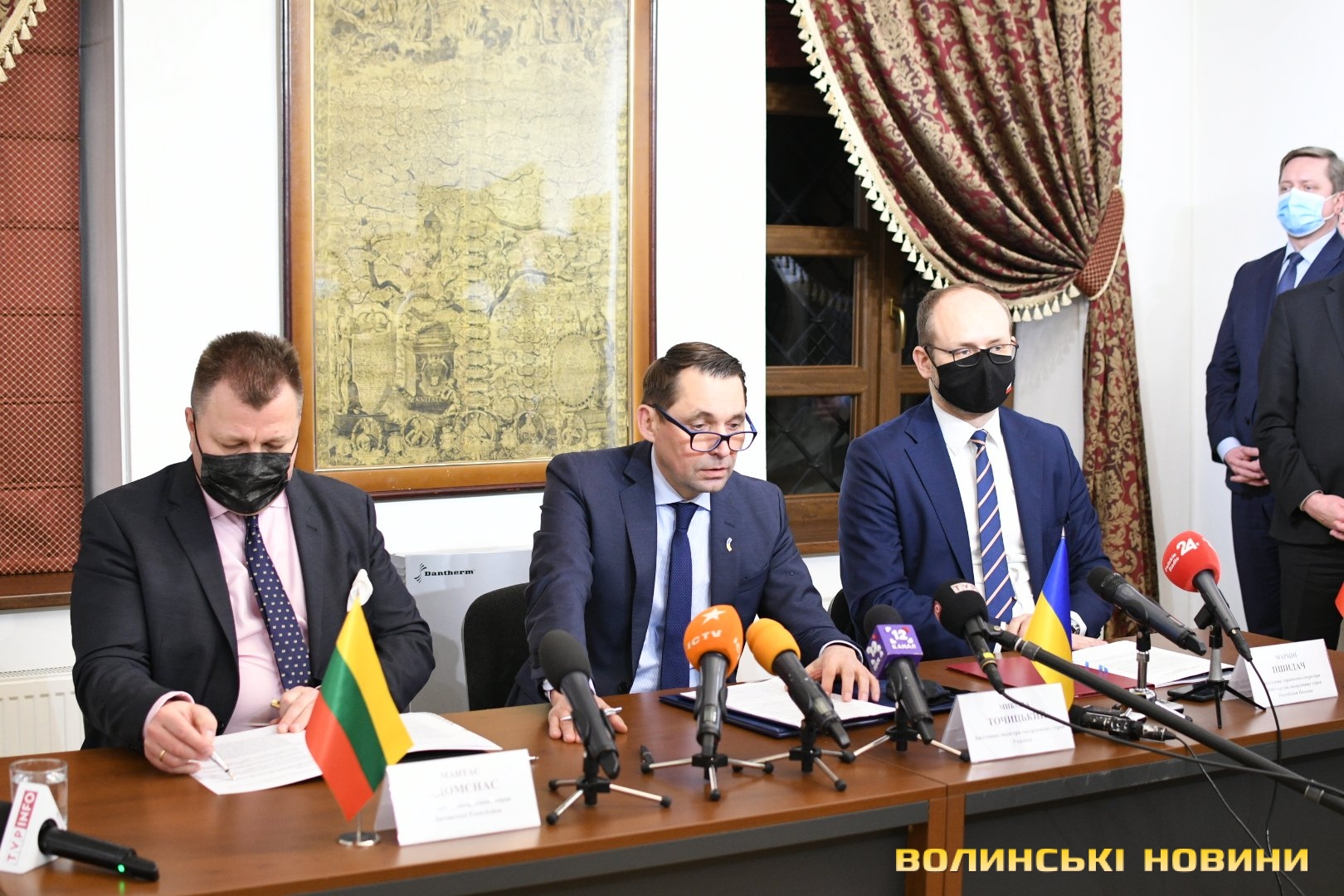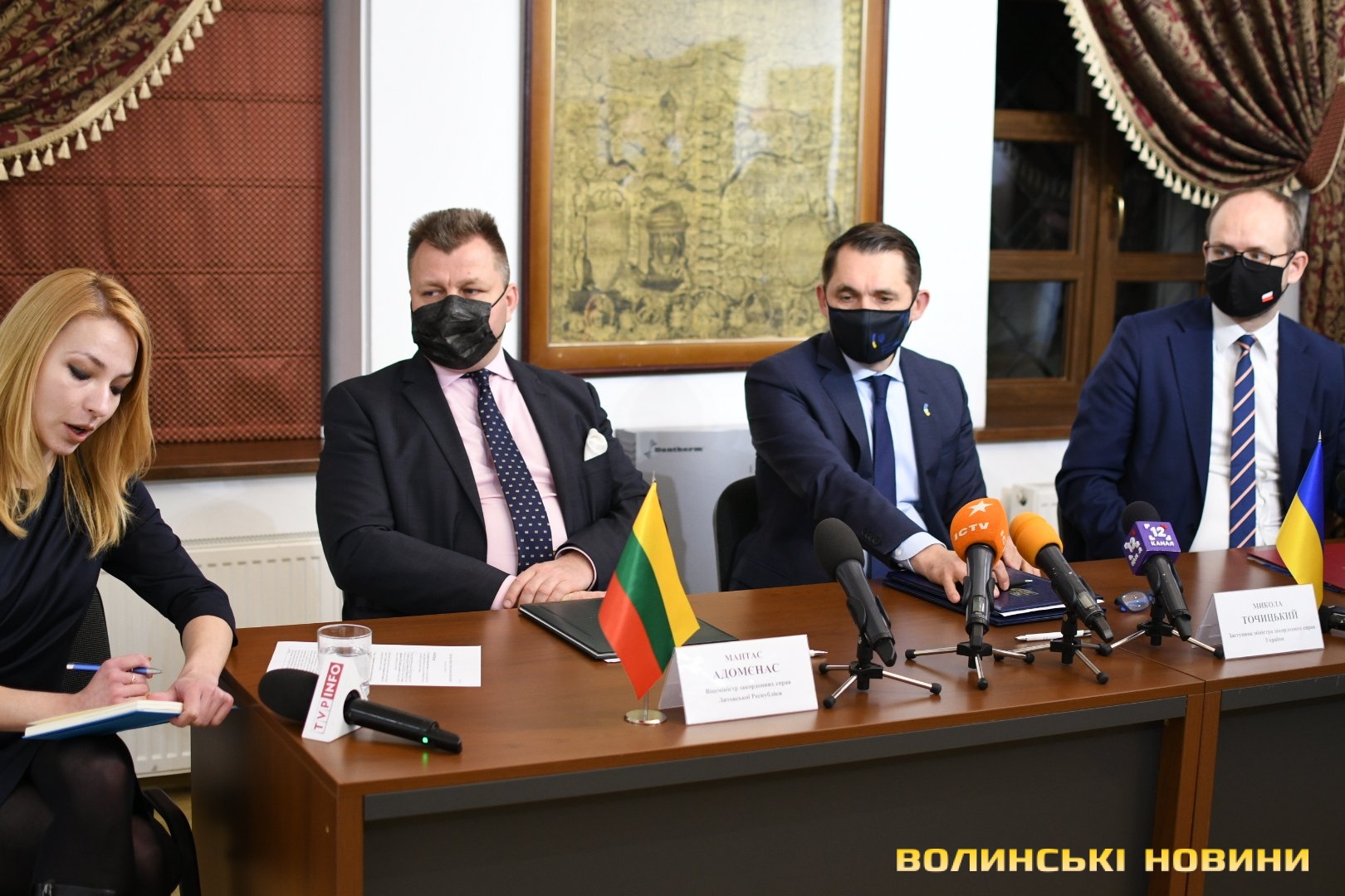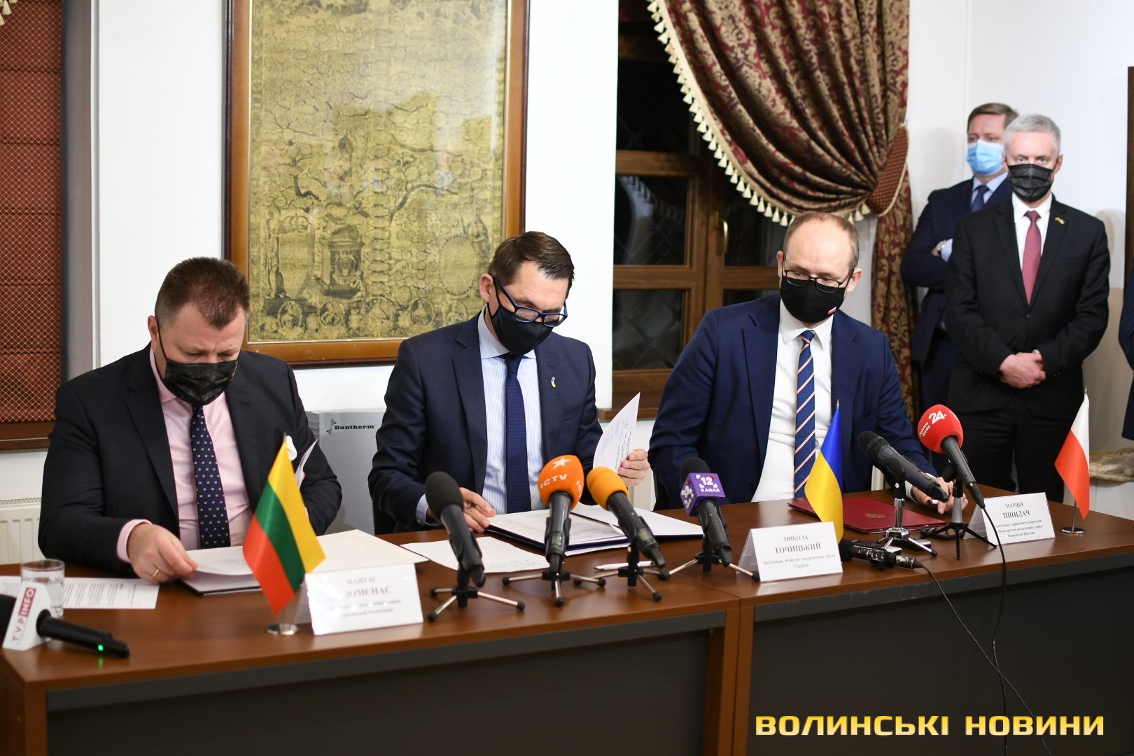 Микола Точицький, Марцін Пшидач та Мантас Адомєнас підписали в Луцьку план спільних дій із протидії дезінформації на 2022-2023 роки. Він передбачає підготовку регулярних спільних доповідей про виклики та загрози в інформаційній сфері, розробку механізму спільного реагування на російські дестабілізаційні кампанії, обмін досвідом і посилення інституційних спроможностей із протидії гібридним загрозам.