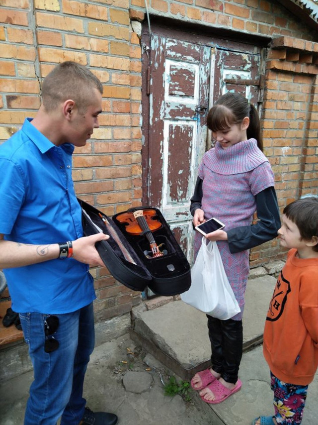 «Сьогодні вранці разом з Voladimir Babiy відвезли скрипочку одній дівчинці з гарним ім'ям Надія, яка мешкає в с. Топільно, Рожищенського р-ну. Вона мріяла про неї ще з того часу поки перебувала на лікуванні в Обласній дитячій лікарні . І ось зусиллями багатьох людей і не без Вовиної підтримки - дитяча мрія здійснилась! Велика подяка людям причетним до придбання скрипки, а саме Ірина Бура, Валерія Лесюк, а ще людині, яка фактично купила і подарувала дитині мрію, а вірніше перший крок до мрії Vadym Kotsaga. Надійка дуже хоче навчитись грати на скрипочці і ось яким чином здійснити повну мрію ще нам треба подумати. Наразі бажана річ і щасливі очі юної дівчини то нагорода для нас з Володею, а тепер і для всіх, причетних до цього», - пише волонтер Inna Goldovanska.