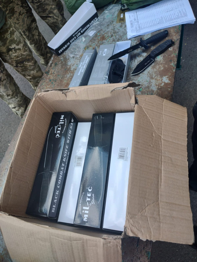 Волинські митники звернули увагу на багаж мікроавтобуса, що в”їжджав в Україну. Для проходження контролю кожен з пасажирів подав документи з переліком закупленого у Польщі спецодягу чи спецвзуття у стилі мілітарі. Працівники управління боротьби з контрабандою і порушеннями митних правил ретельно звірили заявлений товар із фактично наявним. Під час огляду встановлено повну або часткову відсутність одних позицій, натомість виявлено не зазначений у товаросупровідних документах вантаж.Серед усього – 32 ножі з рукояткою та піхвами торгової марки MIL ТЕС, що мають ознаки холодної зброї. Їх вилучили на експертизу. До Нацполції скеровано повідомлення про злочин, попередньо кваліфікований за ознаками ст. 263 Кримінального кодексу «Незаконне поводження зі зброєю».Крім ножів, «зайвими» у багажі виявилися ще понад дві сотні одиниць спецодягу чи спецвзуття вартістю майже 300 тис. грн. Їх теж тимчасово вилучили на склад митниці. Відповідно до ст. 483 Митного кодексу, подання митному органу неправдивих відомостей про товар тягне за собою штраф в розмірі 100% вартості предметів порушення з їх конфіскацією. Після завершення провадження остаточне рішення у справі ухвалить суд.