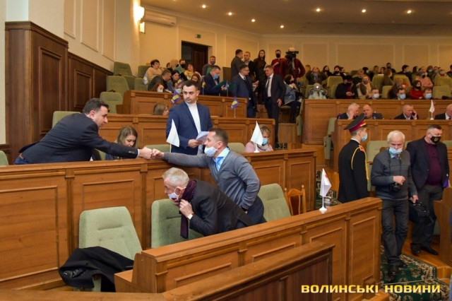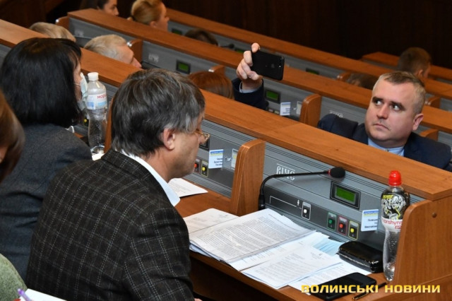 Одразу ж по тому в сесійній залі вручали посвідчення «Почесний громадянин Волині». Посмертно. Ще у грудні минулого року депутати проголосували за присвоєння цього звання 25 волинянам, які загинули під час російсько-української війни. Їхні імена можна прочитати тут.Попри негоду, майже всі запрошені родичі приїхали до Луцька. Отримували посвідчення тати і мами, дружини, сини і дочки. Всі присутні в залі стояли. Емоції стримати було складно.Після церемонії родичі пішли додому, а депутати знову сіли на свої місця. Попереду – затвердження бюджету і декілька спірних моментів, де емоції знов будуть трохи зашкалювати, щоправда, вже інші.Цього дня в президії сиділо два чинних голови облради: Волинської та Полтавської. Очільник Полтавської облради Олександр Біленький приїхав на два дні, щоб підписати Меморандум про співпрацю. А заодно і поспостерігав, як працюють волинські депутати. І як сперечаються.Після всіх процедурних моментів депутати приступили до роботи. Оголошували заяви і запити: про дороги, екологію і книжку про одностатеву любов. Повідомили про утворення нової фракції.Але тихо-мирно сесію провести не вдалося: депутати більше, ніж пів години обговорювали питання щодо переходу деяких колег у інші комісії. Так, заяви двох депутатів від ЄС Івана Мирки та Віктора Дудечка, які хотіли перейти у транспортну та бюджетну комісії відповідно, не задовольнили. Голова «регламентної» комісії Анатолій Вітів мотивував це тим, що депутати не прийшли на засідання комісії і не пояснили своє рішення.Натомість за колег вступилися їхні однопартійці. Ористлава Сидорчук назвала таке рішення «порушенням свободи вибору та обмеженням реалізації професійного потенціалу депутатів». Юлія Вусенко своєю чергою зазначила, що їхня фракція має право на те, щоб представник був у складі «бюджетної» комісії. У відповідь Анатолій Вітів повідомив, що бюджетна комісія і так найбільша, й запросив депутатів до своєї. Сергій Кошарук зазначив, що депутати не кріпаки, щоб за них вирішували, кому і де працювати, і звинуватив голову регламентної комісії в перевищенні повноважень.Зрештою голова облради Григорій Недопад припинив дискусію, запропонувавши Іванові Мирці вчергове подати заяву про перехід у транспортну комісію і прийти на комісію з питань регламенту. І нагадав, що будь-який депутат має можливість прийти на засідання будь-якої комісії і брати участь в обговоренні питань, у тому числі й бюджетних.