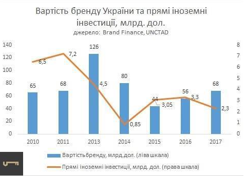 За оцінками консалтингової компанії Brand Finance, бренд «Україна» у минулому році коштував 68 мільярдів доларів.