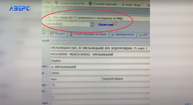 Натомість 1 квітня автомобіль зареєстрували в Хмельницькому на ТОВ «Астра-Люкс», яке має юридичну адресу в Києві.Відзначимо, що «Асоціація перевізників та імпортерів» зареєстрована за тією ж адресою, що й ГО «Воїн», яку очолює Михайло Смолка. Як доказ своєї непричетності до цієї справи він надав акт приймання-передання цього автомобіля 6-му прикордонному Волинському загону.