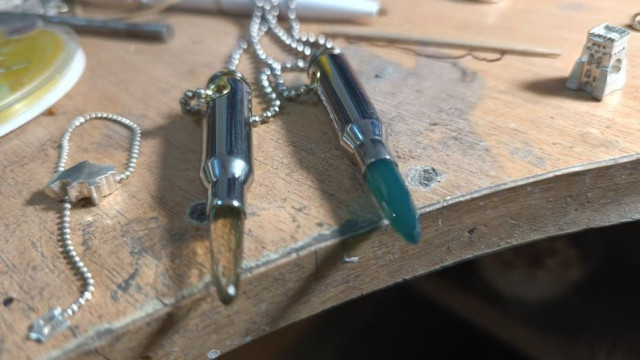 «Я їх обробив і вставив замість кулі грановані камені. І вони так вішаються на ланцюжок та мають дуже стильний і гарний вигляд. Багато хлопців замовляли з передової. Відправляю їм туди», – каже майстер.Читати ще: «Найулюбленіший виріб – той, якого ще не створив», – ювелір з Луцька про натхнення, стереотипи і тренди