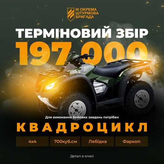 Для 3 окремої штурмової бригади, у якій служить лучанин, оголосили збір на бойовий квадроцикл.
