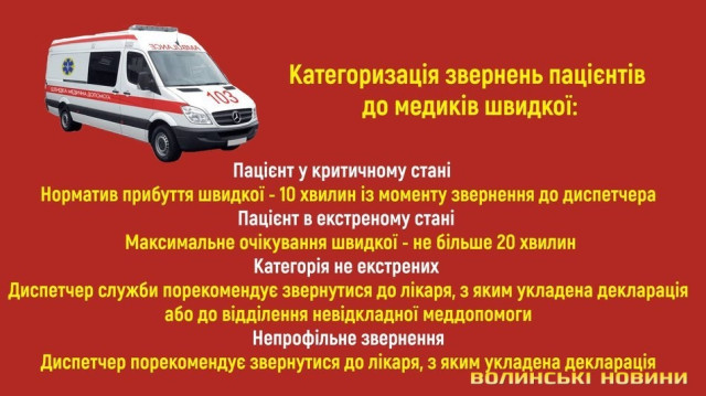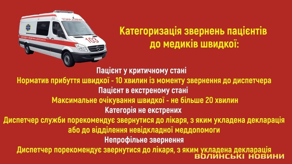 Бригади виїжджатимуть якнайшвидше: як працюють нові правила виклику швидкої на Волині
