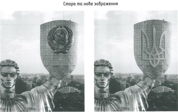 «Проєктними рішеннями передбачається влаштування тризуба на щиті монумента, який відповідає зображенню на малому Державному гербі України. Тризуб замінить старий радянський герб», – йдеться у повідомленні.