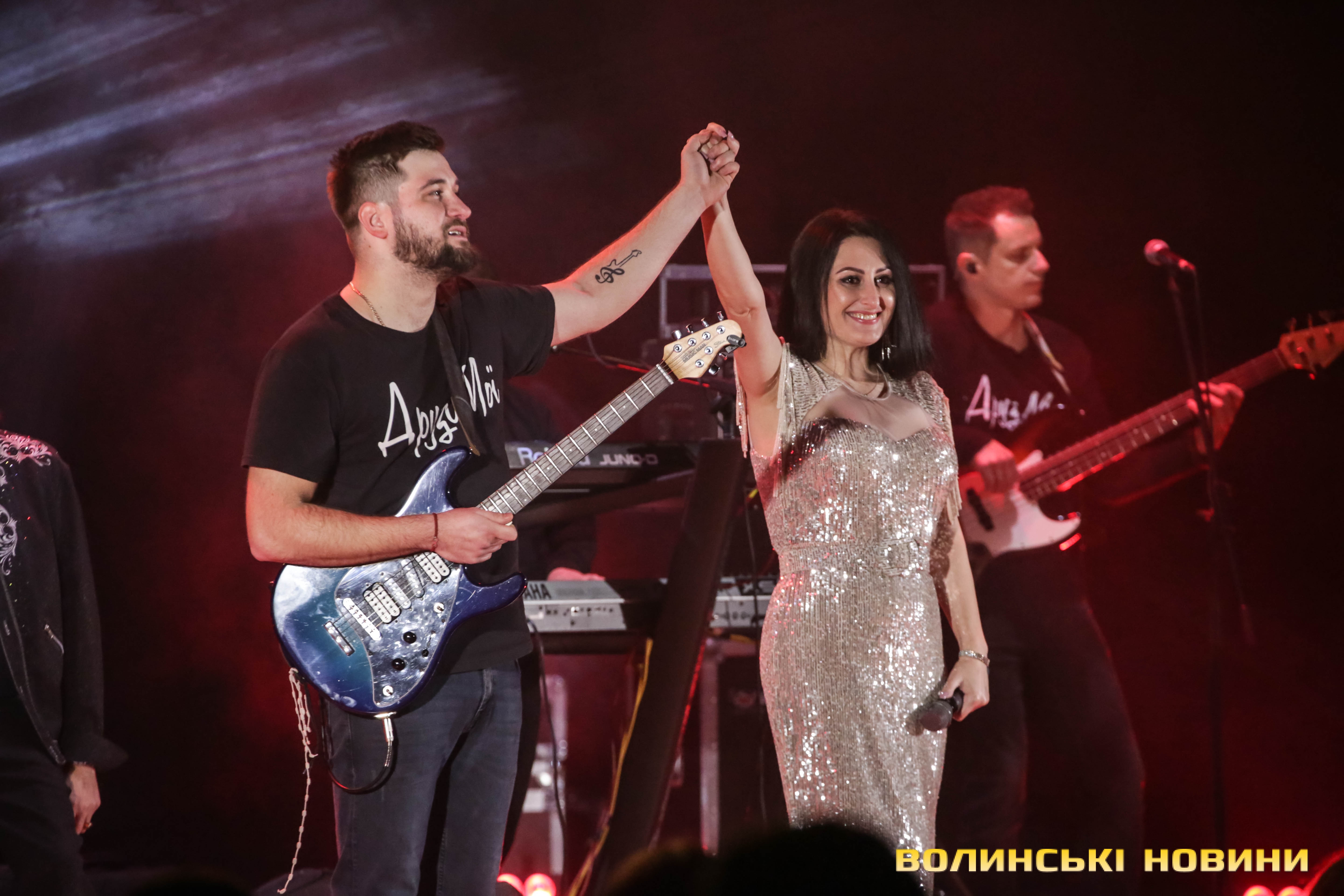 А далі на сцену традиційно вийшов Гриць Драпак з гумористичним виступом або, як нині модно називати, зі стендапом. Гуморист-ведучий розповів про свою пенсію та закликав ніколи не вірити москалям, викликавши регіт у публіки. Не обійшовся концерт маестро і без виступів його дітей – SteveG та Квітослави. Також для лучан заспівав Даніель, онук Степана Гіги.Після відпочинку хедлайнер вечора знову з’явився на сцені. Заспівавши «Золото Карпат» та «За тебе все віддам», Степан Гіга змусив присутніх не сідати до кінця концерту, тож вони влаштували справжнісіньку українську дискотеку під легендарні хіти.Степану Петровичу не дозволили піти зі сцени після останньої пісні. Тож для лучан прозвучали легендарні «Яворина», «Друзі мої», а також пісня цієї війни «Ой, у лузі червона калина».Насамкінець Степан Гіга пообіцяв, що одні з наступних його концертів відбудуться у звільненому Криму, а також – на красній площі у москві.