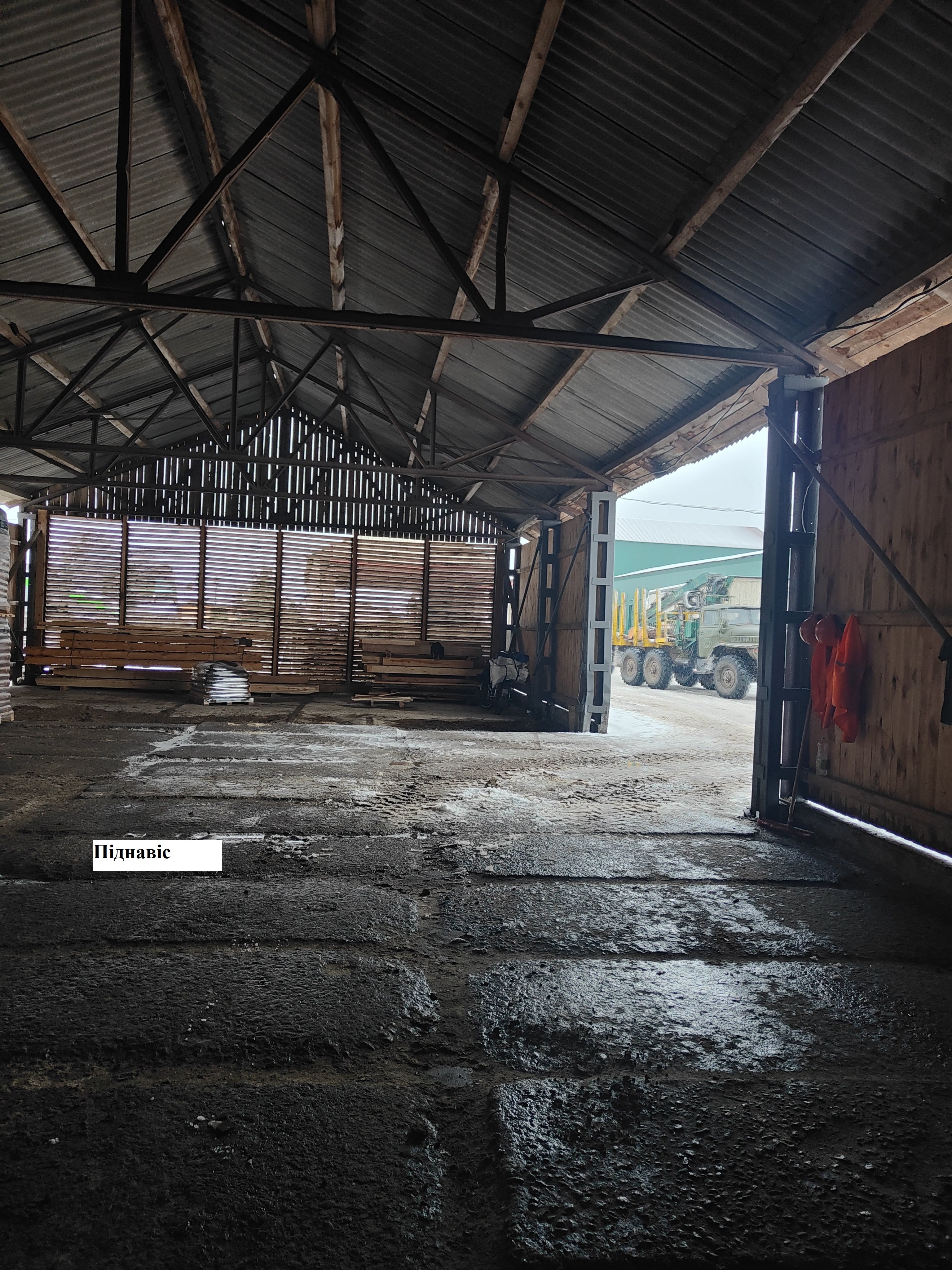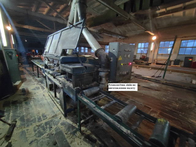 - цех з переробки деревини загальною площею 1462,3 кв. м, який складається з цеху переробки деревини та адмінкорпусу, рік побудови – 1975 (фундамент – бетонний; стіни – цегляні; покрівля – азбестоцементні листи);- цех ДСП загальною площею 868,3 кв. м, рік побудови – 1988 (фундамент – бетонний; стіни – цегляні; покрівля – руберойд);- склад готової продукції загальною площею 419,9 кв. м з навісом, рампою, рік побудови – 1982 (фундамент – бетонний; стіни – цегляні; покрівля – азбестоцементні листи; навіс – стовпи цегляні; рампа – залізобетонні колони);- сушилка загальною площею 33,8 кв. м, рік побудови – 1978 (фундамент – бетонний; стіни – сандвіч-панелі; покрівля – азбестоцементні листи);- сушилка загальною площею 280,6 кв. м з навісом, димовою трубою, рік побудови – 1978 (фундамент – бетонний; стіни – цегляні; покрівля – азбестоцементні листи; навіс – дерев’яний; димова труба – металева);- трансформаторна будка загальною площею 28,4 кв. м зі сходами, рік побудови – 1978 (фундамент – бетонний; стіни – цегляні; покрівля – рубероїдна; сходи – металоконструкція);- інше рухоме майно: багатопильний верстат, вентилятори, верстат круглопильний, верстат продольнопильний, верстат торцовочний круглопильний, електронна лінійка, заточувальний верстат, колодовізок, пилорама з додатковим обладнанням, верстат Wood-Mizer, технологічна лінія з виготовлення палет, верстат для розведення зубів стрічкової пили, конденсаторна установка, шафа управління, кран, КТП, електрокран-балка, комплект обладнання для виробництва гранули, котел опалювальний, машина рубальна барабанна, транспортер, кран-балка, естакада, піднавіс, навантажувач фронтальний.Читати ще: Цех переробки деревини волинського лісгоспу виставили на аукціон