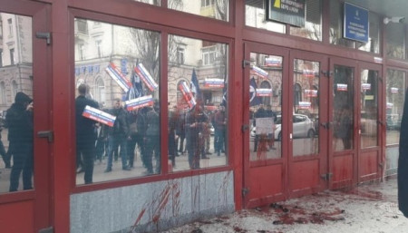У вівторок, 12 березня, будівлю Національного антикорупційного бюро закидали яйцями і облили тваринною кров’ю.