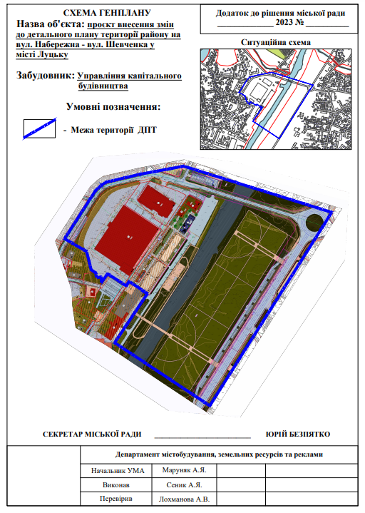 На розгляд членів виконкому винесли питання про затвердження проєкту внесення змін до детального плану території району вул. Набережна – вул. Шевченка у місті Луцьку.