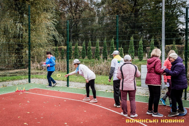 «Хтось у аптеку, а ми на спортмайданчик», – жартує одна з учасниць змагань, які організувала громадська організація «Центр освіти «Університет третього віку»». Її очільниця Оксана Степанюк пояснює: «День здоров’я» вирішили приурочити до Міжнародного дня студента, в контексті програми «Здоровий спосіб життя – активне довголіття».«Сьогодні тут зібралися більше тридцяти наших студентів та друзів, наймолодшим з яких за п’ятдесят, а найстаршому – 89 років. Усі вони активні, цікаві, дбають про своє здоров’я. І це – чудово, що є такі заходи, які ще більше об’єднують людей поважного віку! Тут зібралися команди клубу ветеранів «Неспокійні серця» Палацу культури міста, Територіального центру соціального обслуговування Луцької міської територіальної громади, Луцького міського центру фізичного здоров'я населення «Спорт для всіх». Будемо знайомити з сучасними видами спорту: корнхолом, петанком, дартсом. Та й без звичних видів, звичайно, не обійдемось. Спеціально підбирали вправи без великих фізичних навантажень, але цікаві та динамічні. Хочу подякувати Фонду Ігоря Палиці «Тільки разом», який постійно нам допомагає. Сьогодні ж завдяки його підтримці, ми отримали ігрові комплекти та увесь спортивний інвентар», – розповідає Оксана Степанюк.«День здоров’я» розпочався з урочистого шикування. Після привітання учасників Оксана Степанюк передала слово давньому другу усіх заходів, які проводить Університет, Голові правління Фонду Ігоря Палиці «Тільки разом» Катерині Шкльоді.«Традиційно розпочинаємо зі слів подяки захисникам України. Усім тим, кому завдячуємо можливістю збиратися разом. Учасникам хочу побажати здоровя, залишатися такими ж активними, якими ви є. І побажати усім нашої перемоги. Слава Україні!» – звернулась до учасників Катерина Шкльода.На початку спортивного свята лунає «Молитва за Україну». Щемливу музичну композицію підтримали усі присутні: хтось підспівував, а хтось – витирав сльози. Адже прохання до Бога зараз єдине – дати Україні мир!Катерина Шкльода наголошує: «Підтримувати «Університет третього віку» завжди приємно, адже тут популяризують здоров’я, активне життя і доводять, що бути студентом можна у будь-якому віці. Жити активно можна у будь-якому віці. Фонд з радістю підтримує такі ініціативи. Приємно бачити щасливі обличчя, адже розуміємо у який складний час живемо. Кожна людина потребує розрядки, а спорт чудово справляється з цією задачею».Перед змаганнями спортсмени приступили до невеличкого фітнес-тренування. Активна розминка під запальну музику добряче зарядила енергією. Учасники розподілилися на групи, кожна з яких перейшла на підготовлену локацію. З одного боку корнхол, з іншого – дартс, гімнастичні вправи, петанг тощо. Усі мали можливість потренуватися перед контрольними спробами у виконанні тієї чи іншої вправи, результати якої фіксувалися суддями-тренерами.Найстаріший учасник змагань – Дмитро Андрійович Джус, якому 89 років. Не стримуючи емоцій, каже, що змагання сподобалися. «Спортом займаюся з дитинства. Усім, чим тільки міг. Зараз вже пенсіонер, але думаю, що продовжувати це треба увесь час – до кінця життя. Всі, які тільки проводяться спортивні змагання, – завжди на них приходжу».Як і у кожному спортивному змаганні, сьогодні також є призові місця. А от переможців чи переможених немає! Ор