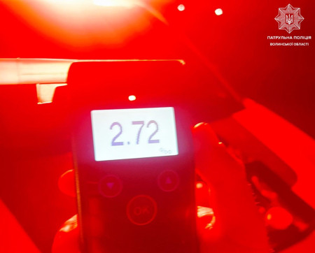 У Ковелі зупинили двох водіїв, результат огляду на приладі Драгер у яких перевищив допустиму норму майже у 15 разів.