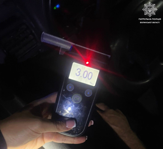 Перевірка на місці за допомогою приладу Драгер показала 3,00 проміле.Читати ще: На Волині автівка злетіла у кювет, є загиблий та травмовані