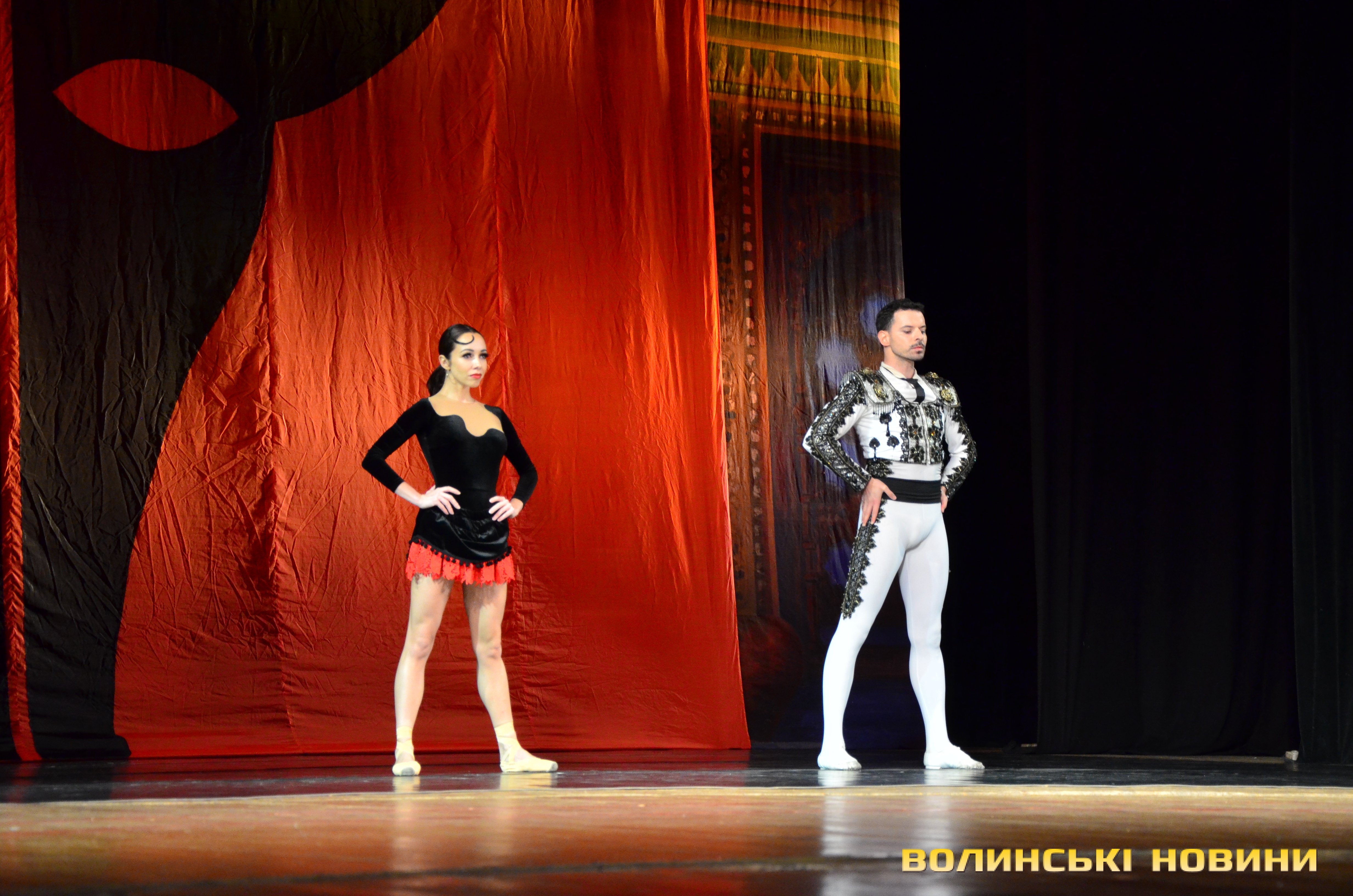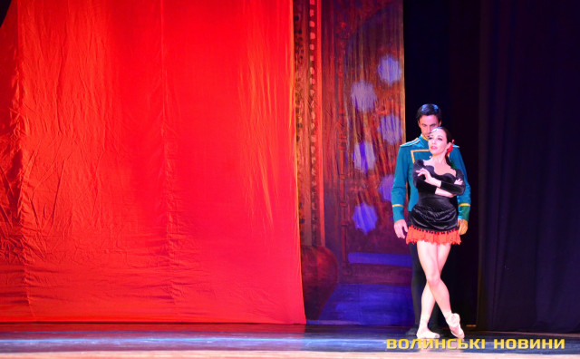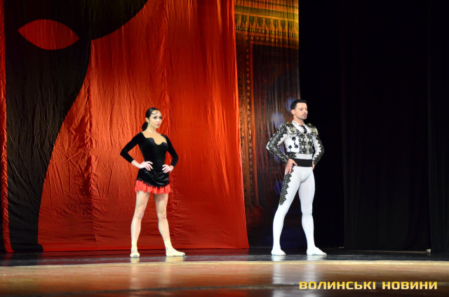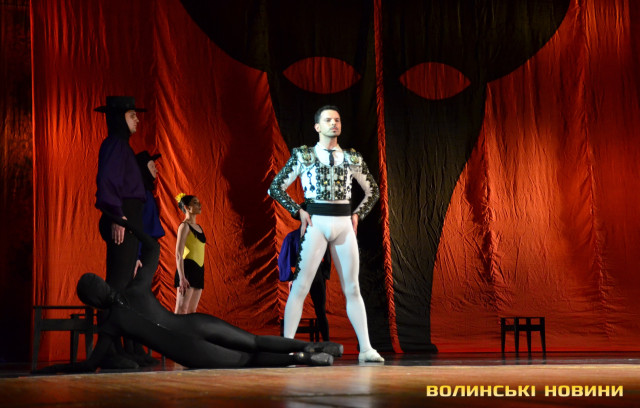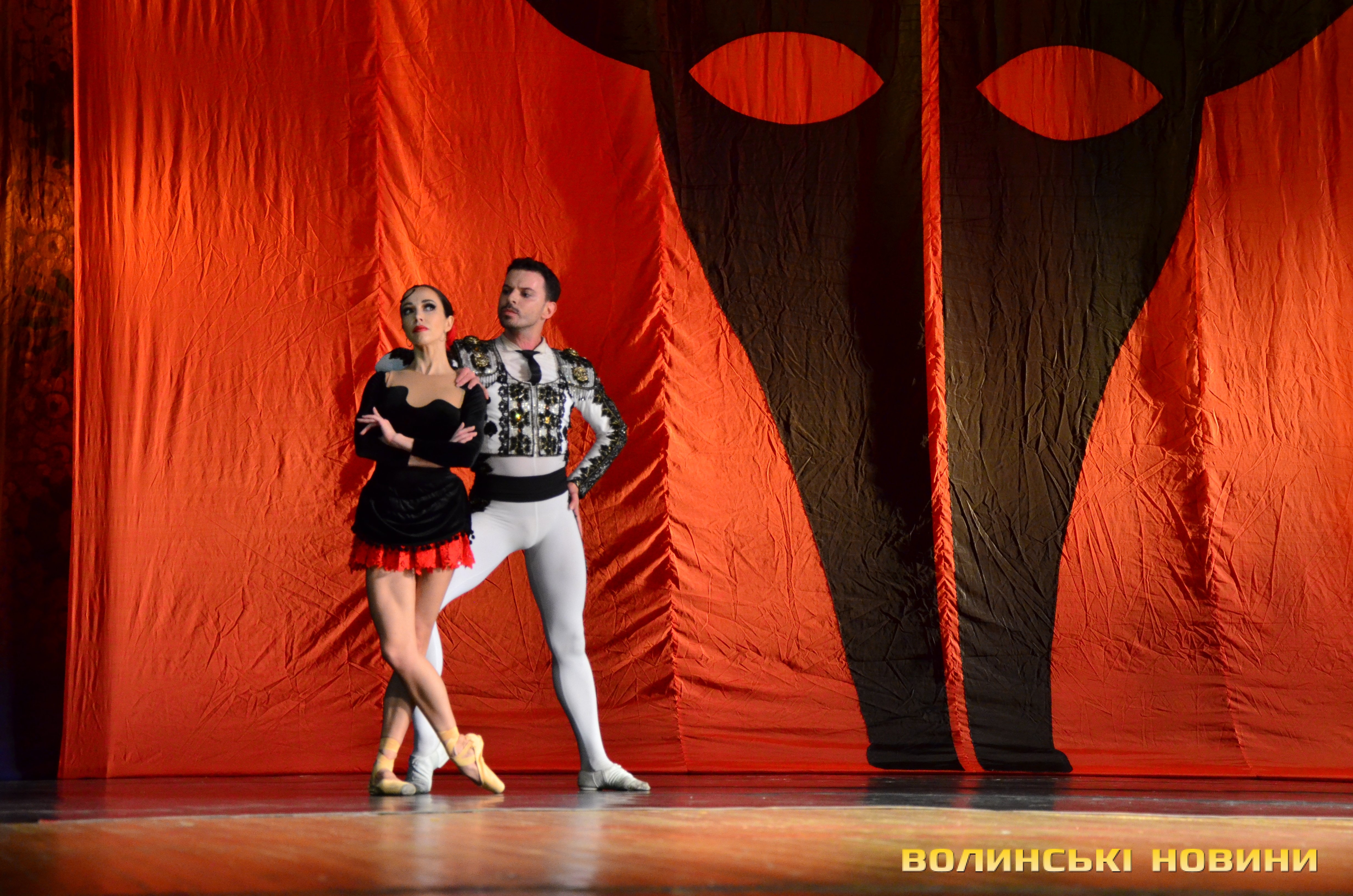 Зіркове подружжя – прима-балерина Катерина Кухар та артист балету Олександр Стоянов – перевтілилися на сцені Волинського облмуздрамтеатру імені Тараса Шевченка в Кармен та Хозе з пристрасної іспанської історії. Молодого Тореро ж зіграв колишній соліст гурту KAZAKY Артур Гаспар.