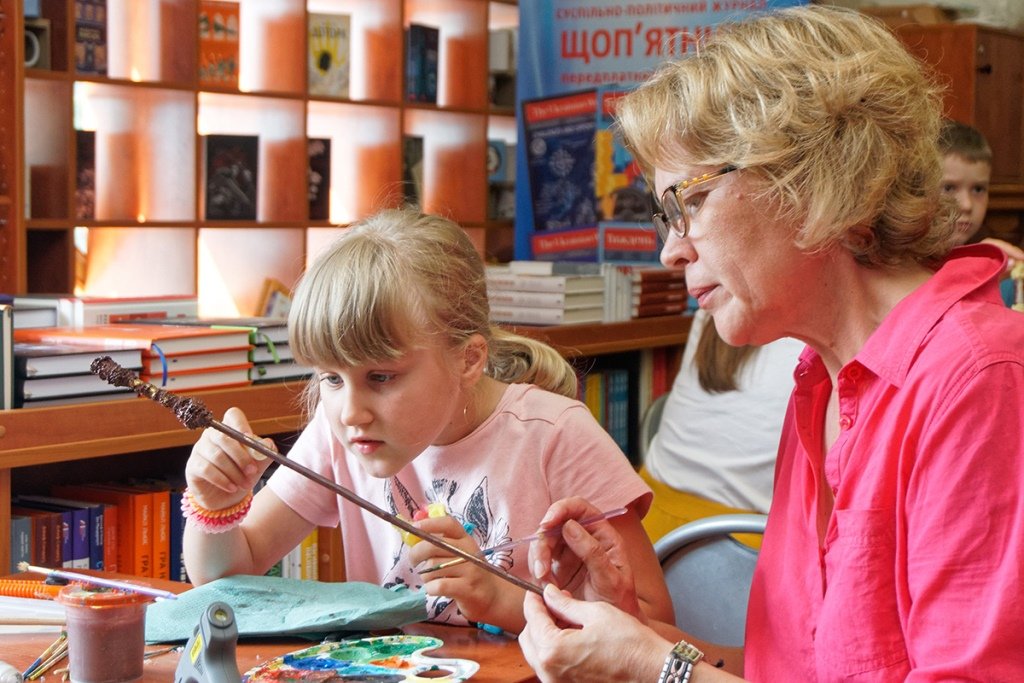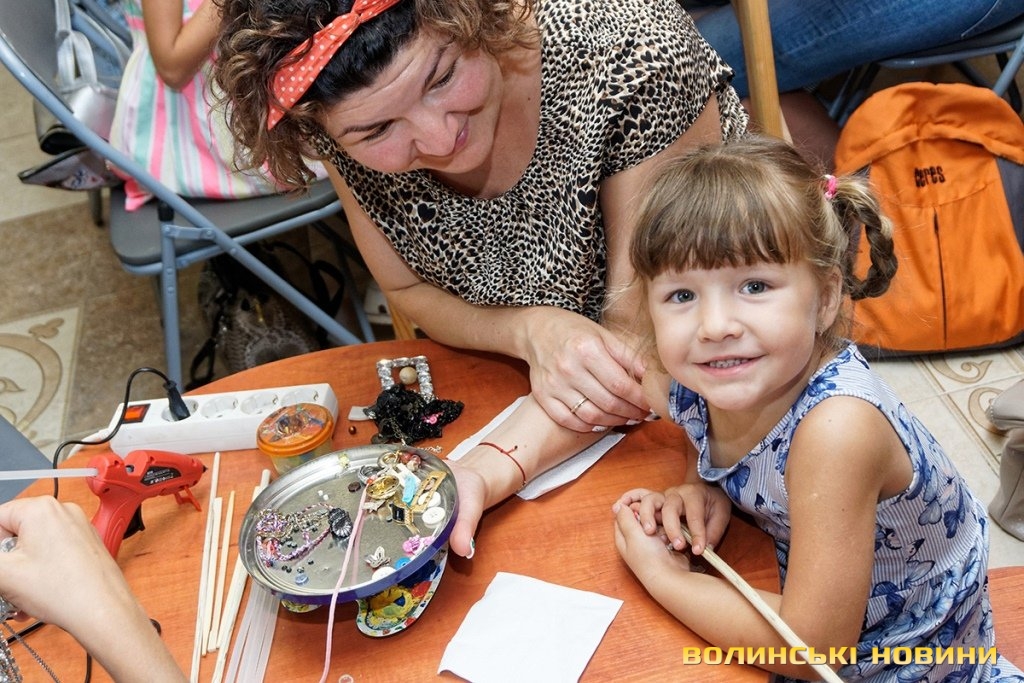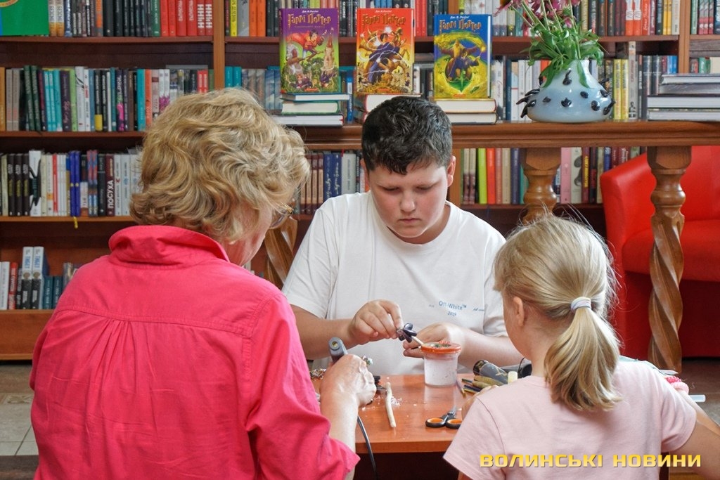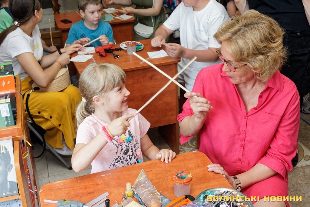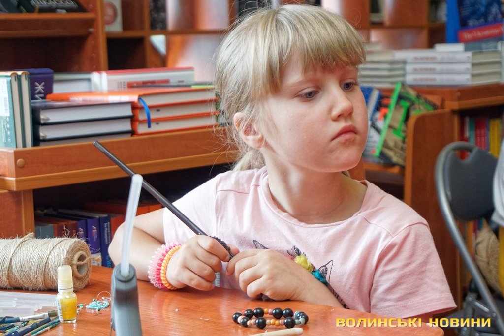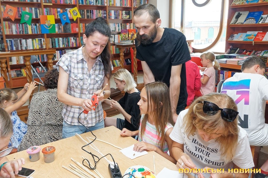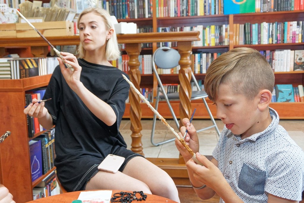 Пам'ятаючи, що ця подія, насамперед, літературна, луцька книгарня «Є» спільно з відомою художницею Іриною Сардак-Бондарук організували тематичний майстер-клас. До обрання його теми підійшли креативно і вирішили навчити усіх створювати власні чарівні палички! І, справді, чи був серед тих, хто поринав у пригоди Гаррі Поттера хоч хтось, хто б на мить не захотів володіти цим могутнім артефактом? Сьогодні ж, 27 липня, і дорослі, і діти отримали таку можливість.