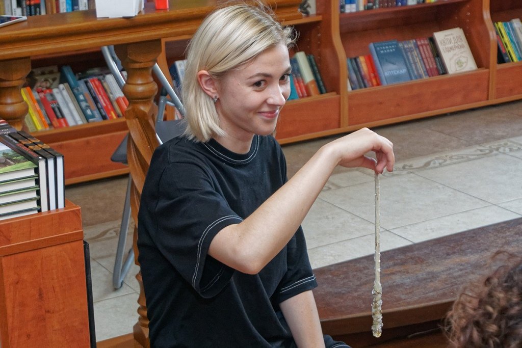 На початку зустрічі майстриня розповіла усім про наймогутніші чарівні палички поттеріани. А далі показала ті, які виготовила власними руками – магічну зброю Албуса Дамблдора та найвідомішу – самого Поттера. До речі, саме її і відтворювали (у різних варіаціях) більшість гостей.