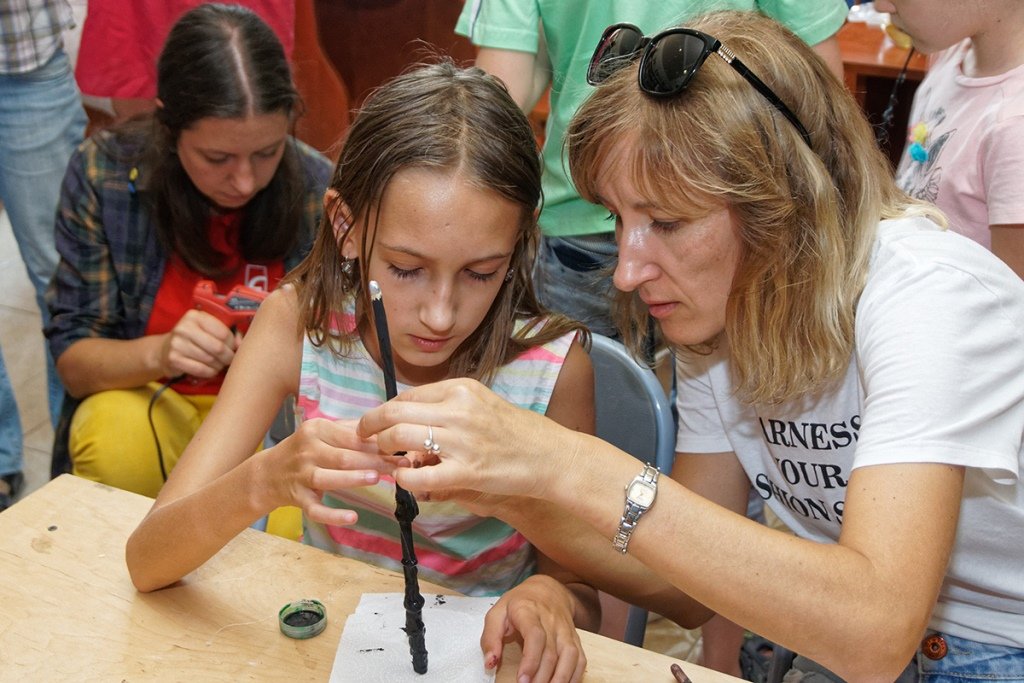 Яскравим завершенням майстер-класу стало спільне чаклування. Здавалося ще трохи – і від дій чарівних паличок, створених власними руками, усі перенесуться у фантастичний світ Гаррі Поттера.
