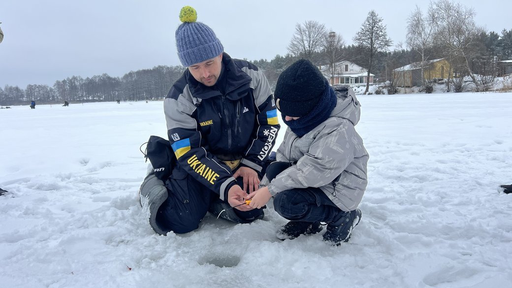 Чемпіон світу та України з ловлі риби з криги мормишкою Віталій Яцина на озері Велике Чорне провів майстерклас для дітей та дорослих.
