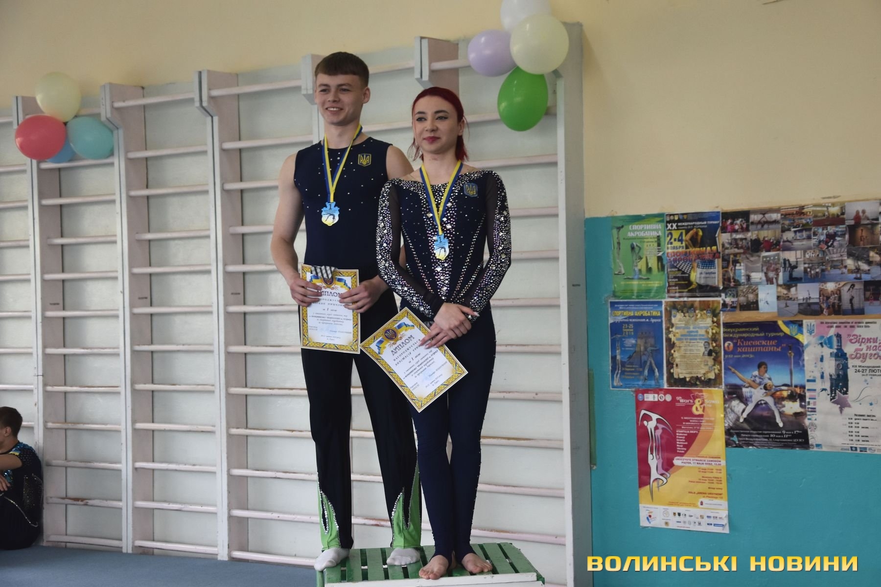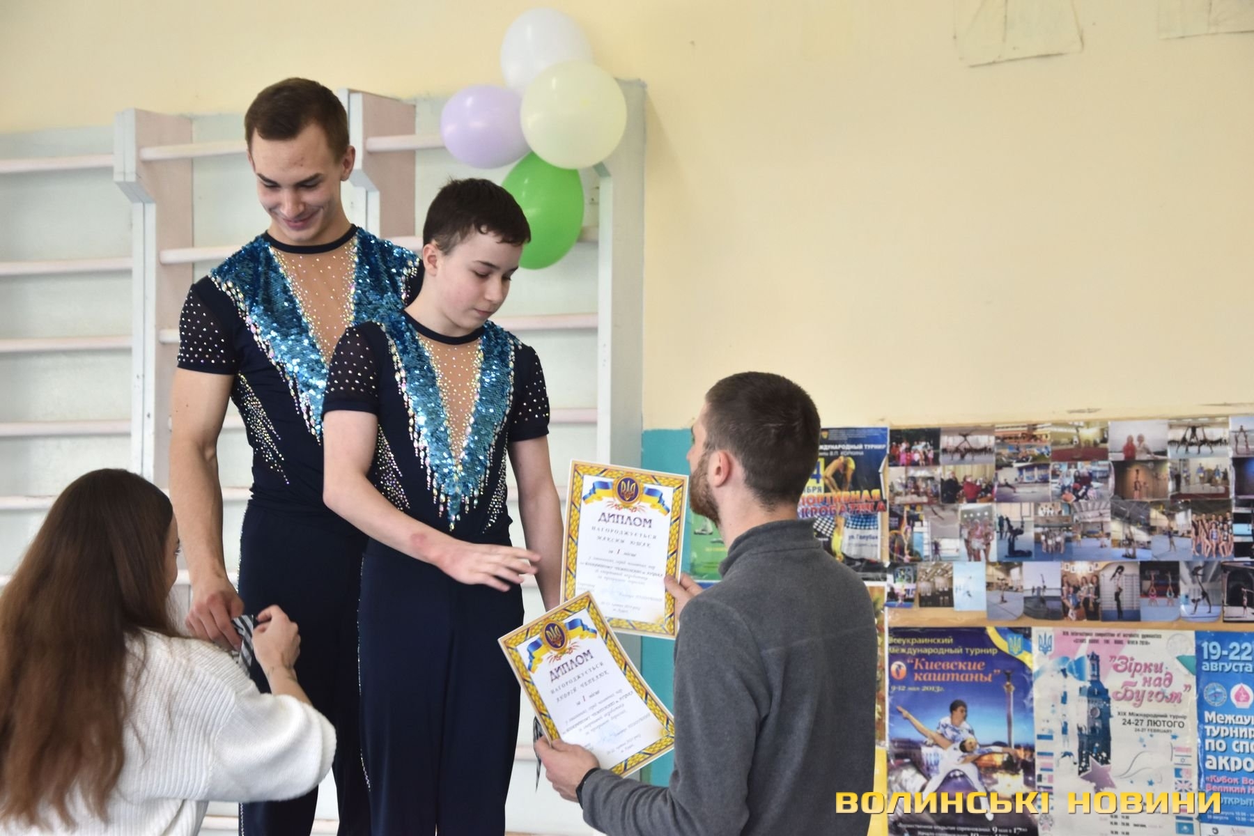 Перше місце у своєму розряді посіли лучани Андрій та Максим. Обоє понад 10 років років займаються спортивною акробатикою. Кажуть: на чемпіонаті Луцька показали програму, з якою невдовзі поїдуть на Кубок світу в Болгарію. Виступом хлопці задоволені, однак, як зазначили, є що допрацювати.Головний суддя змагань, Заслужений тренер України Олена Кришпінович залишилася задоволена виступами учасників.