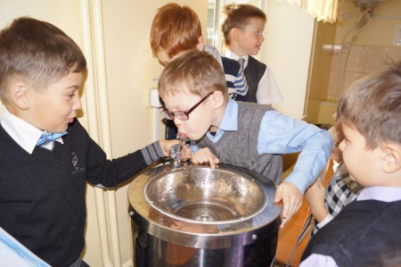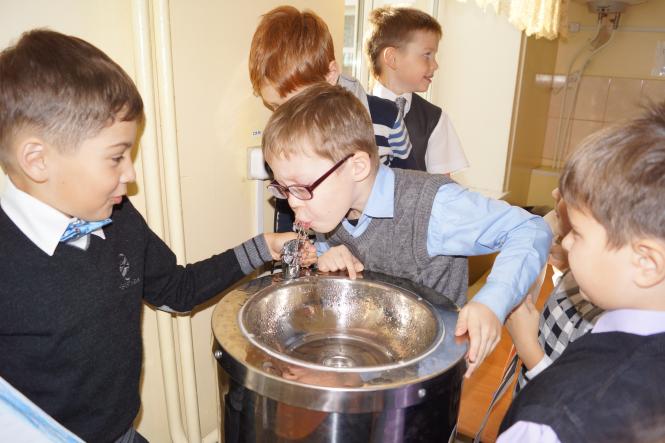 «Це повноцінна система очистки, яка дає можливість діткам пити очищену та мінералізовану воду з бюветів та використовувати її на кухні для приготування їжі. Але, на жаль, ковідні обмеження зобов’язали школу закрити цей «фонтанчик», і ми на цьому етапі зупинилися», – пояснив доповідач.