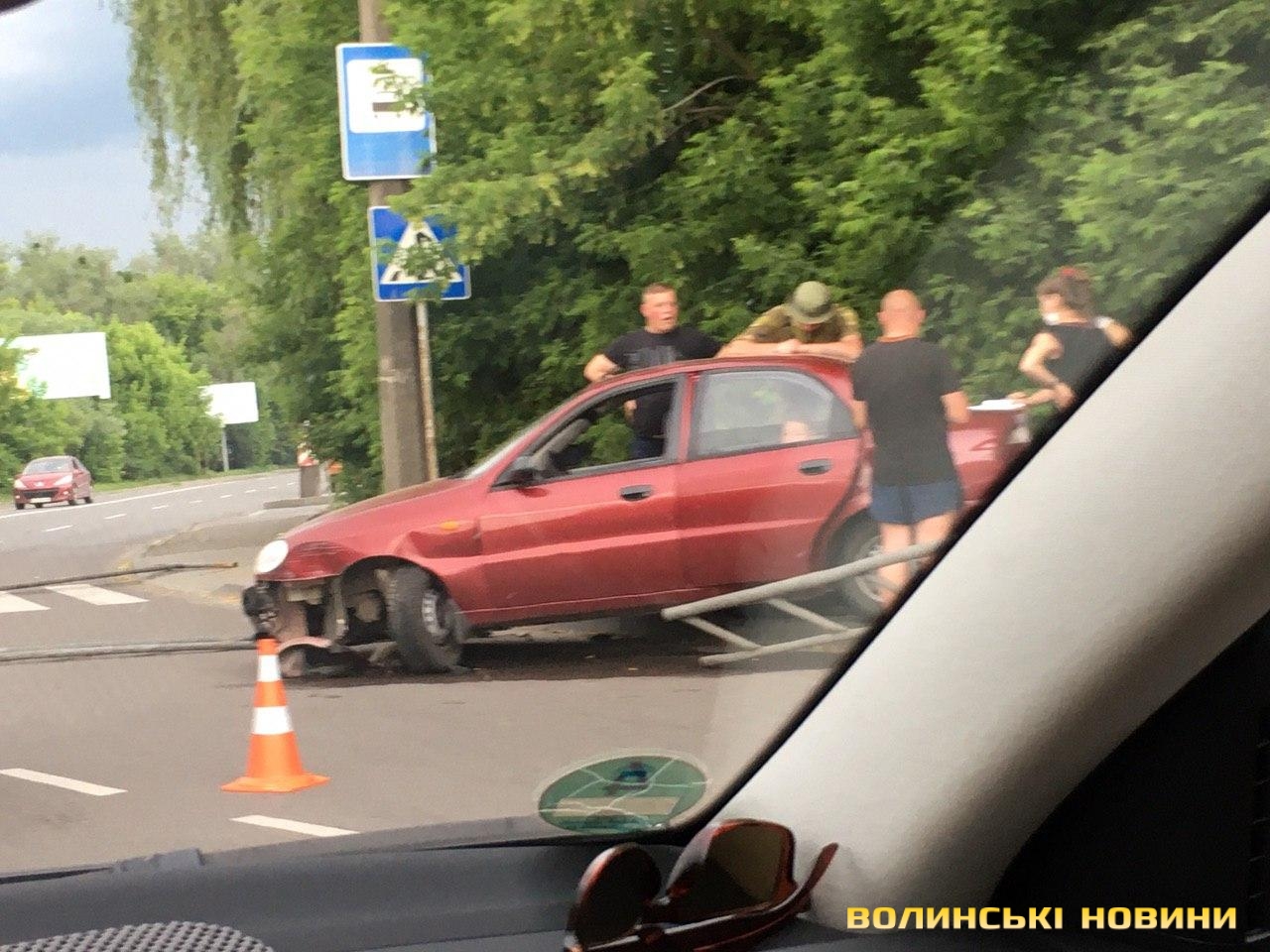 У Луцьку на кільцеподібному перехресті вулиць Набережної і Шевченка легковий автомобіль зніс огорожу.