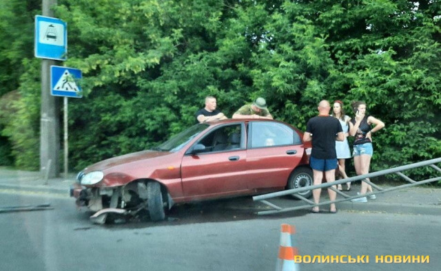 За їхніми словами, автомобіль Део Ланос зніс огорожу і виїхав на тротуар. Автомобіль отримав незначні механічні пошкодження.