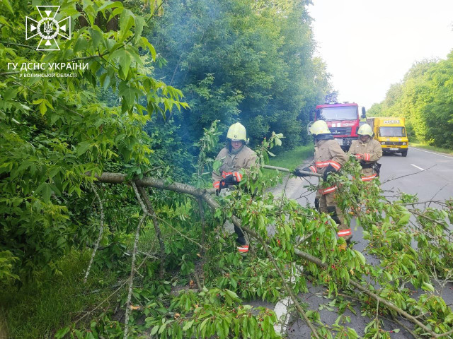 22 червня о 08:15 вогнеборці 9-ї Державної пожежно-рятувальної частини міста Горохів здійснили виїзд для прибирання дерева з проїжджої частини дороги та відновили рух транспорту за селом Скобелка Луцького району.