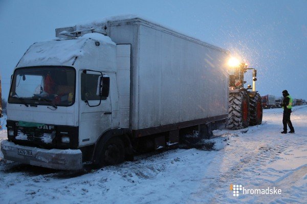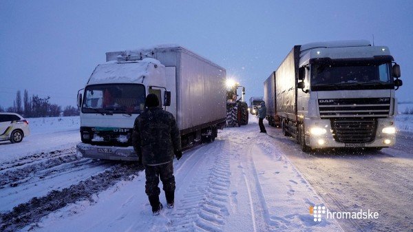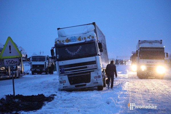 Найбільше заторів саме на території Київщини – через велику кількість вантажівок. Тож колони фур через Київ тепер супроводжують патрульні, щоб ті організовано проїжджали столицю і не утворювали додаткових заторів. Окрім того, в поліції звітують, що на трасах п'яти регіонів почали облаштовувати пункти допомоги водіям – там можна обігрітися та попити чаю.