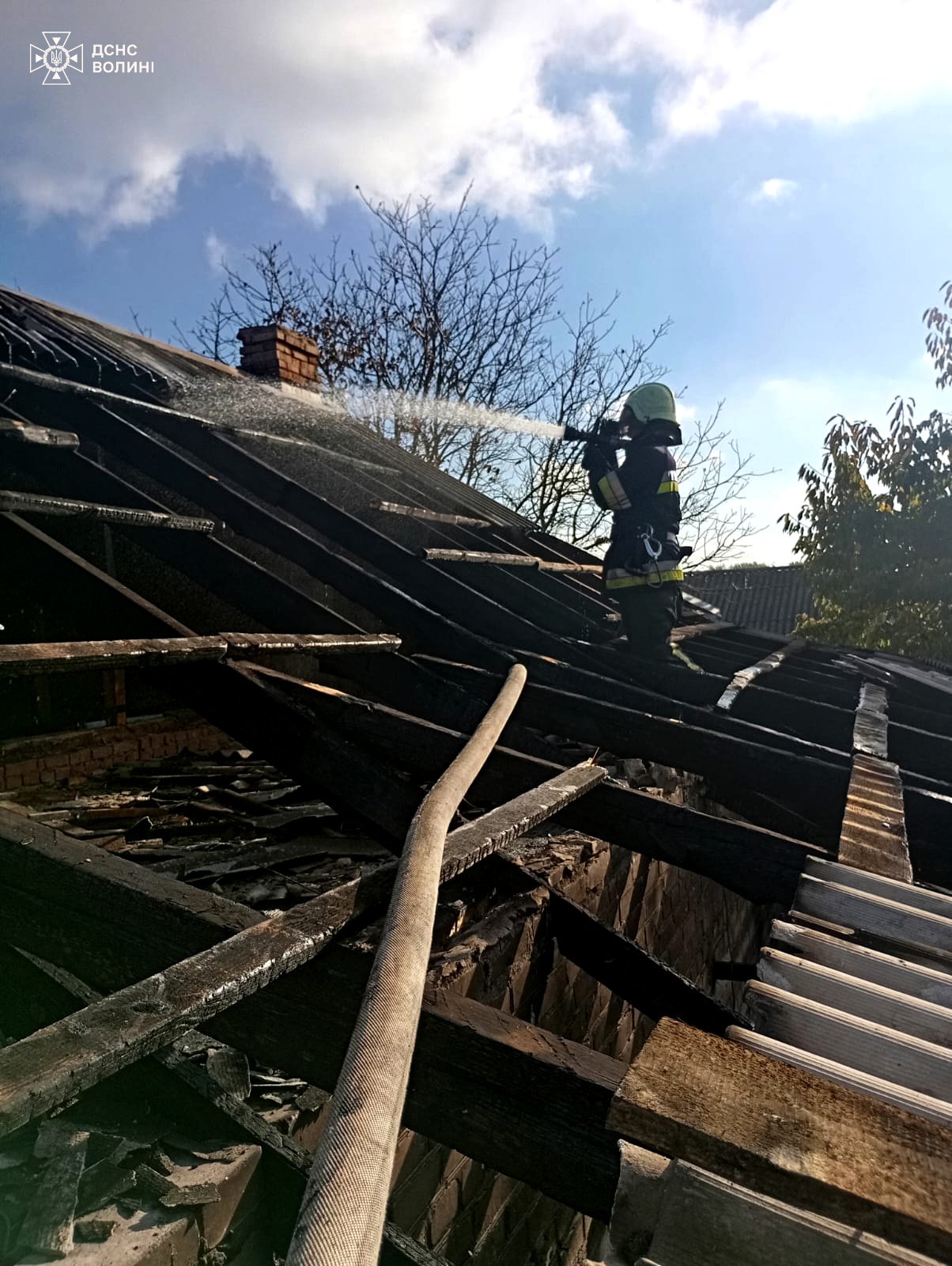 Рятувальники локалізували горіння о 14:26 та запобігли подальшому поширенню полум'я на хату.