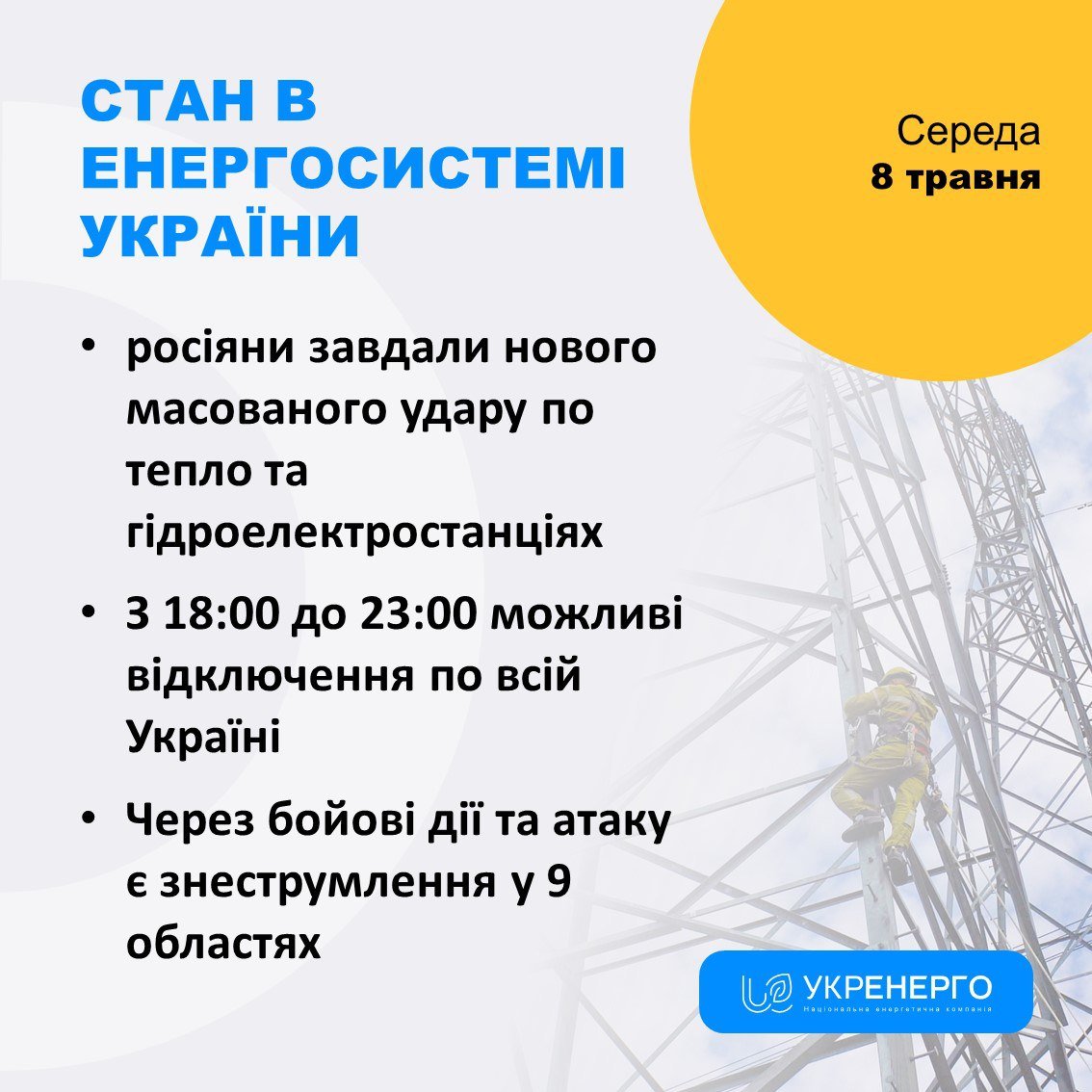 Про це повідомили в «Укренерго».