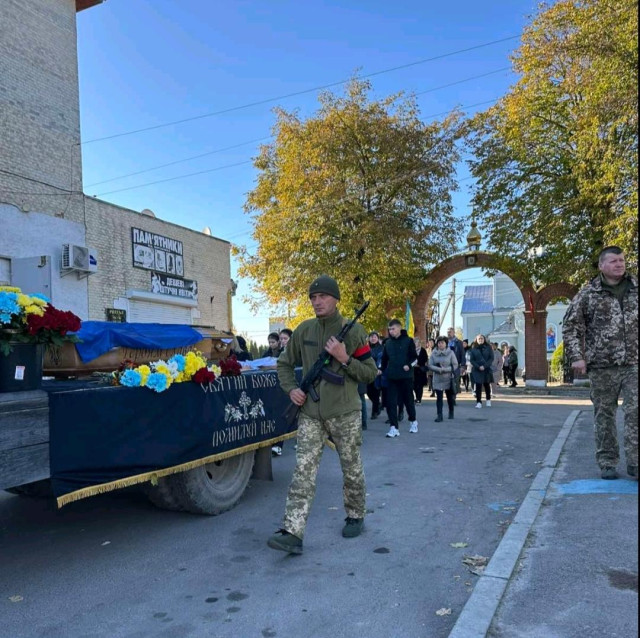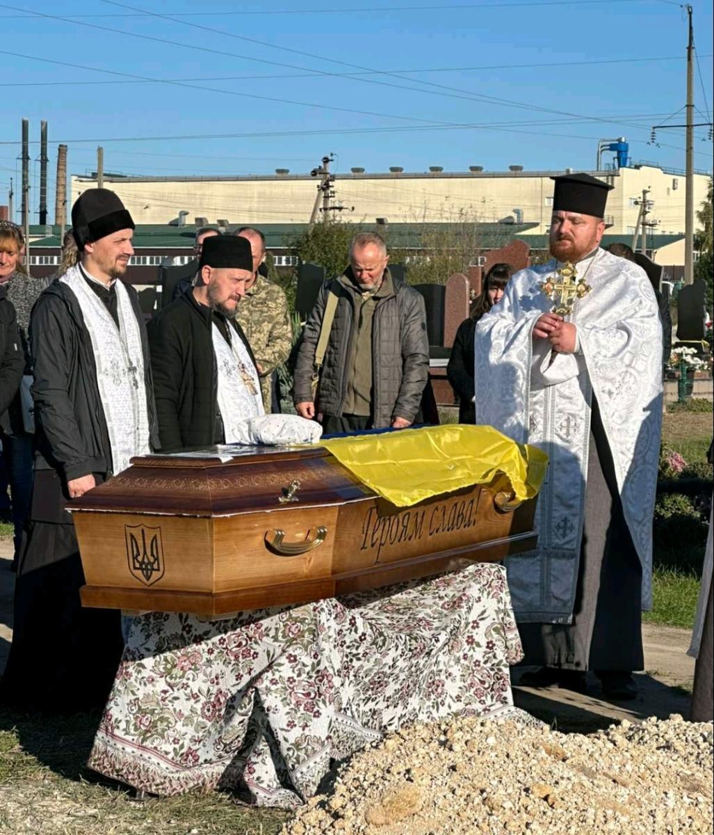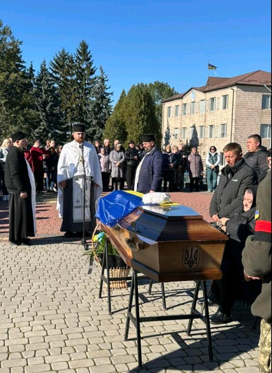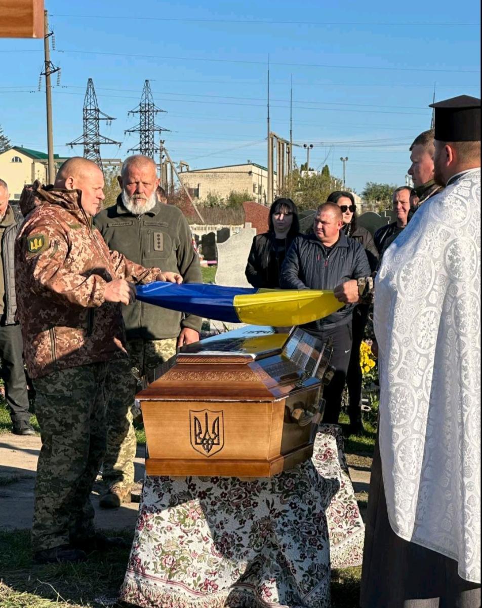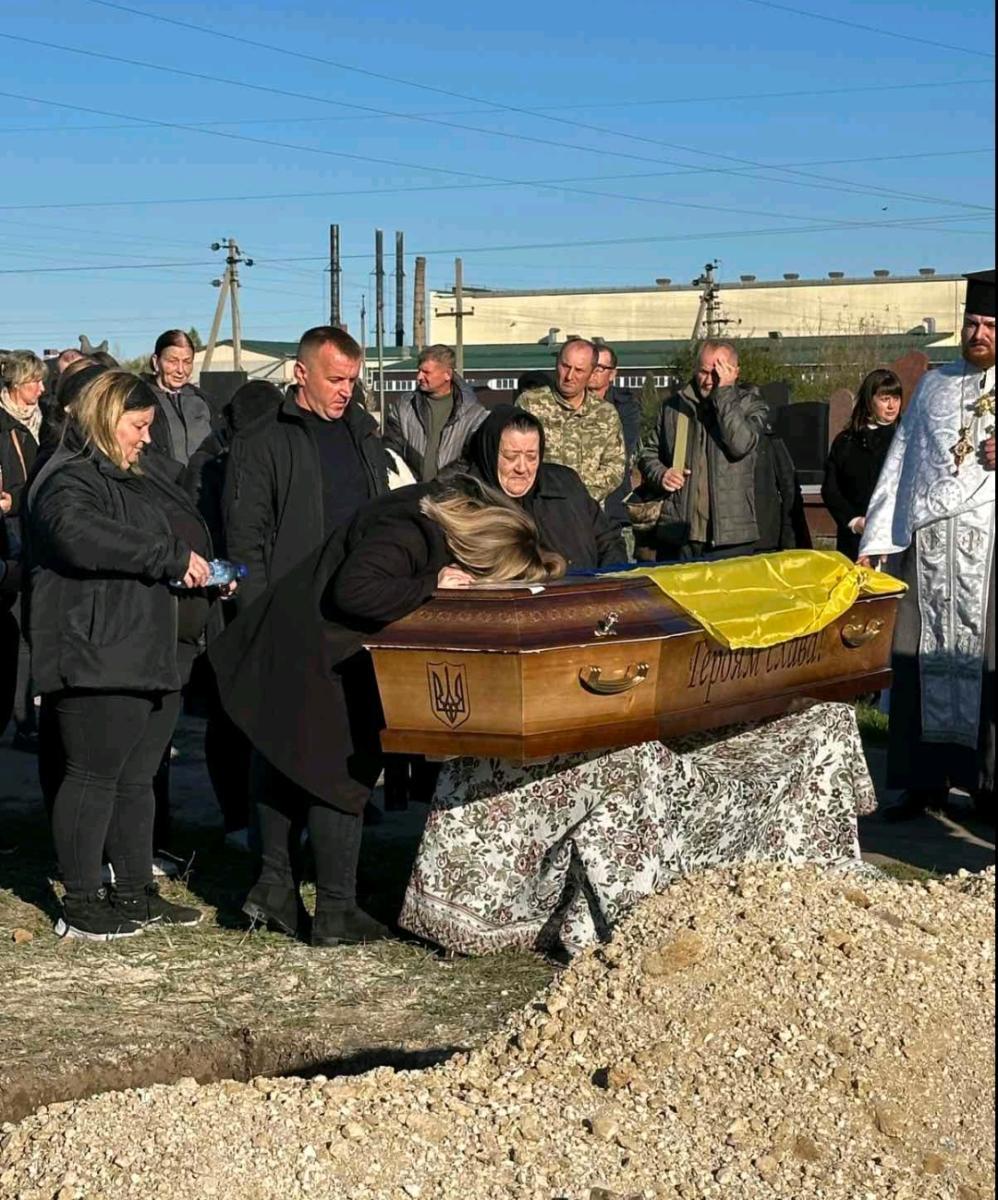Осінні квіти вкривали домовину воїна як останній дарунок земного життя. І погідне осіннє сонечко ніби хотіло пом’якшити безмежний смуток родини, хоч біль від цієї втрати – назавжди, бо не лікує його навіть час.Скорботним кортежем тіло Героя спочатку доправили до рідного дому, де востаннє з ним прощалися найрідніші та усі, хто постійно спілкувався у мирному житті.