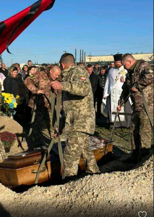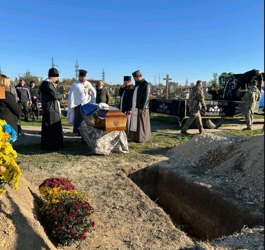 Поховали загиблого Миколу Поручника з усіма почестями під залпи почесної варти та Державний Гімн України.