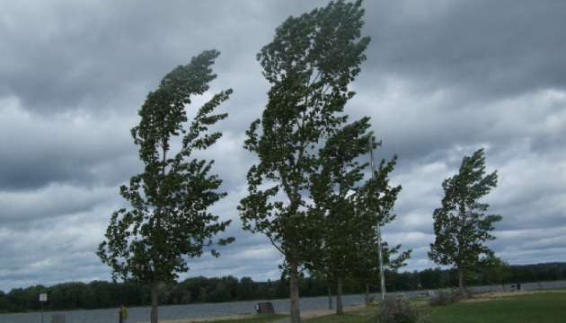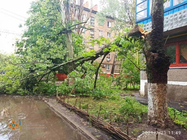 За даними ДСНС Донецької області, вчора у північній частині області спостерігався короткочасний град з поривами вітру 15-20 м/с, внаслідок чого в багатьох містах дерева впали на будівлі, проїзні частини, авто та лінії електропередач.