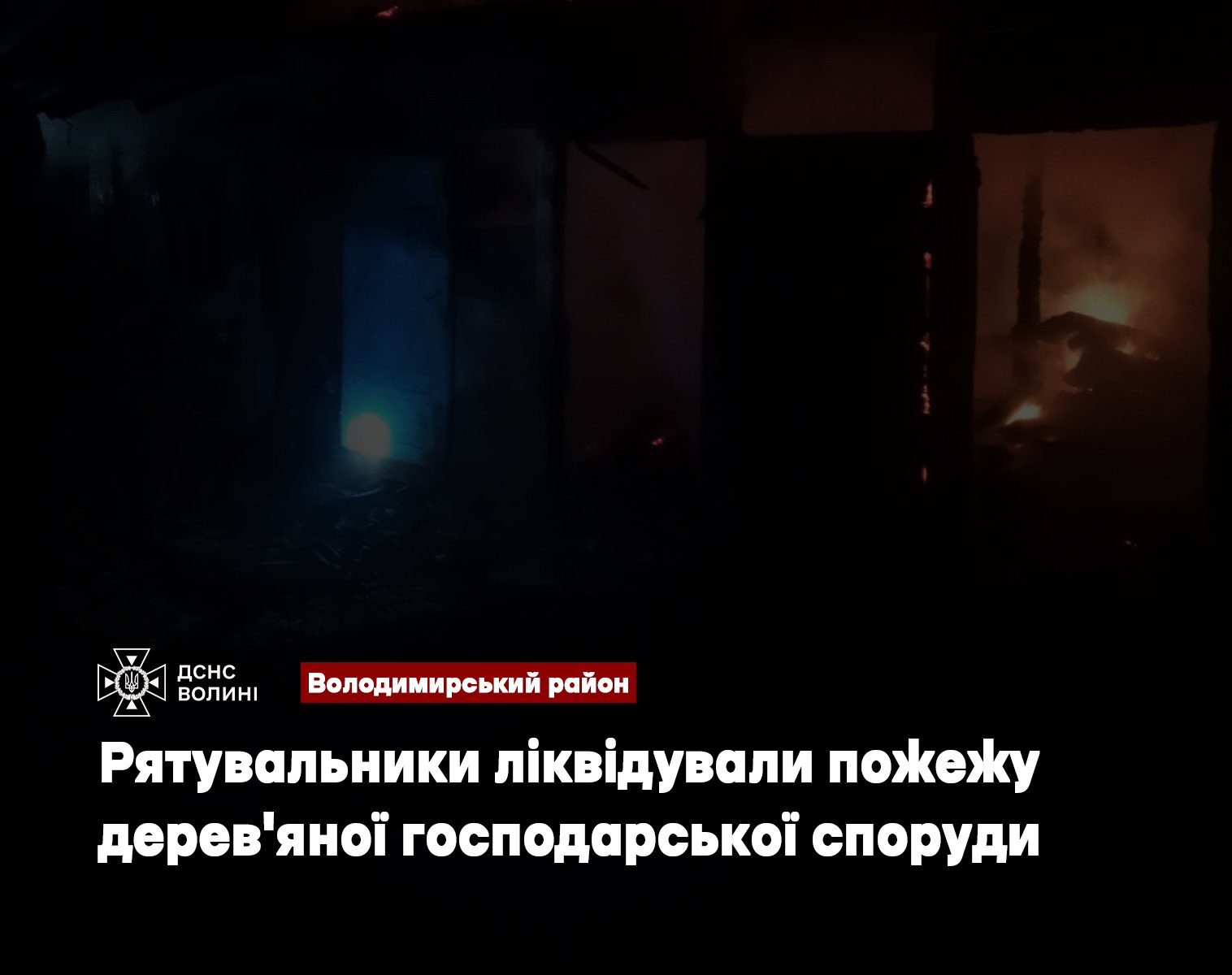 21 січня о 01:21 надійшло повідомлення про пожежу дерев’яної господарської споруди у с. Хмелівка Зимнівської громади Володимирського району.