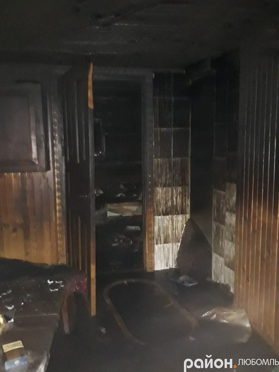 «Внаслідок пожежі знищено кімнату 3 на 4 метра, 2 метра квадратних підлоги. Пошкоджено 20 метрів квадратних дерев'яних конструкцій та дерев'яного облицювання, меблі», – про це повідомив головний інспектор Любомльського РВ УДСНС у Волинській області, капітан служби цивільного захисту Микола Лябук.