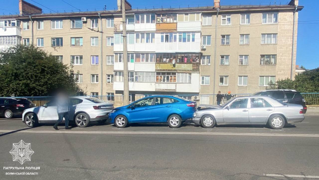 Через неуважного водія Mercedes у Луцьку на мосту – подвійна ДТП