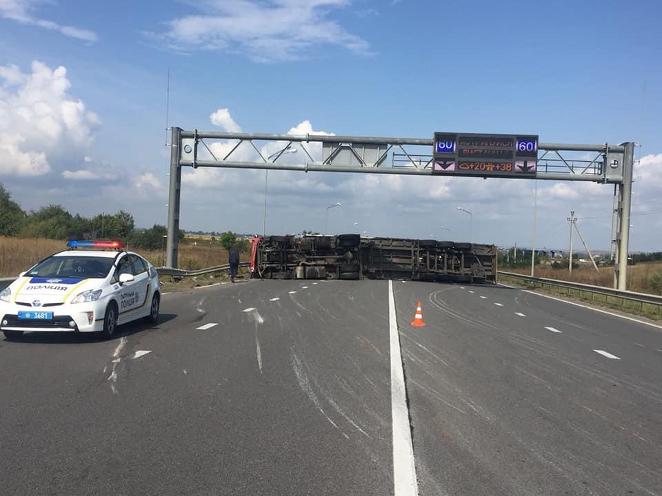 У Рівненській області через п’яного водія перекинулася вантажівка, внаслідок чого автодорога «Київ-Чоп» виявилася повністю заблокованою для руху транспорту.