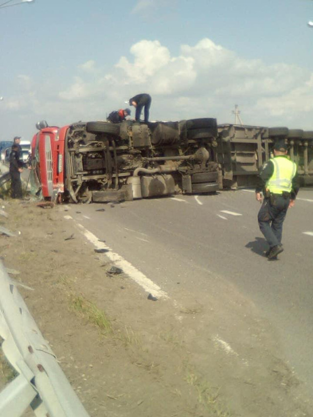 «Унаслідок перекидання вантажівки з причепом було заблоковано чотири смуги на трасі міжнародного значення «Київ-Чоп». За приблизними підрахунками, черги від місця скоєння ДТП сягнули 3 кілометрів у обидва боки», - йдеться у повідомленні.