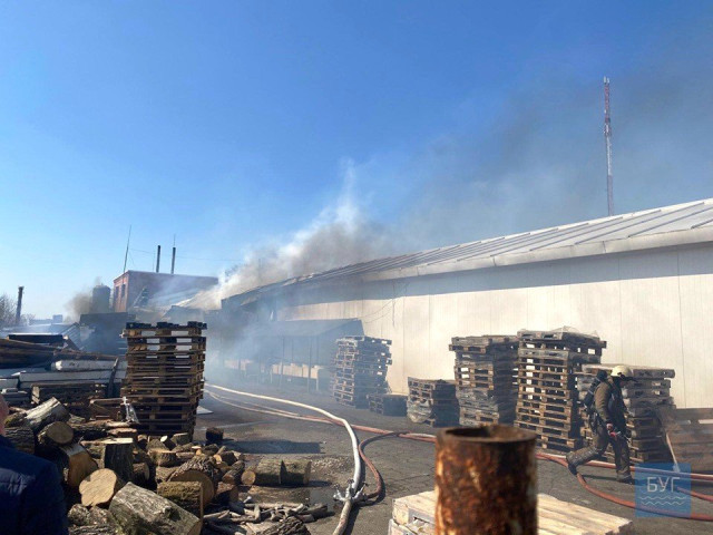 Загорілися дерев’яні палети, розповіли очевидці. Окрім того, вогонь перекинувся на приміщення, в якому зберігалася побутова техніка.